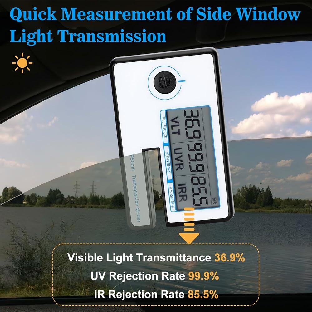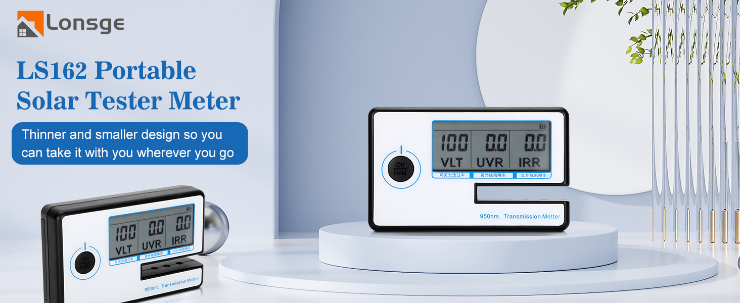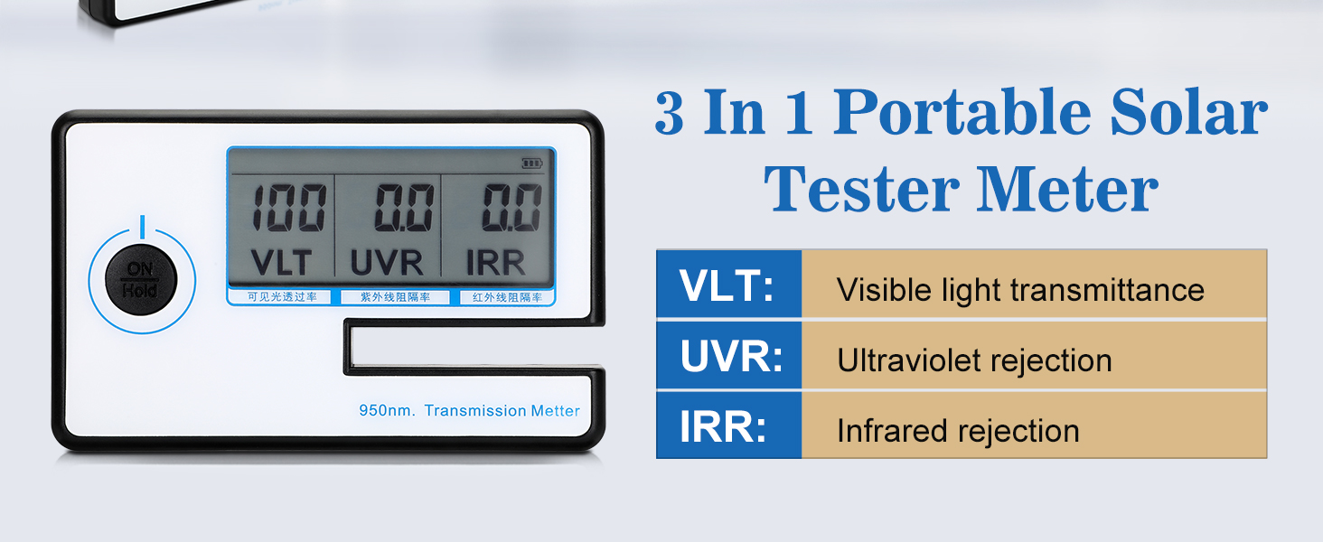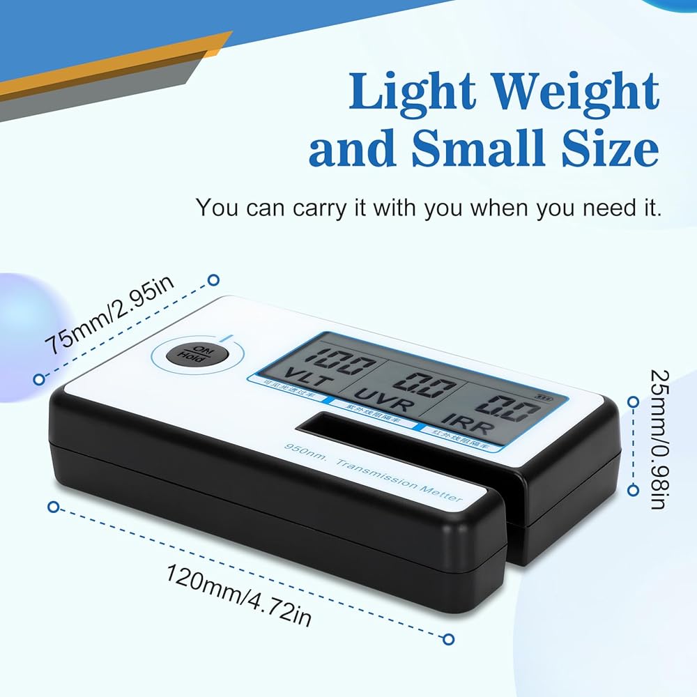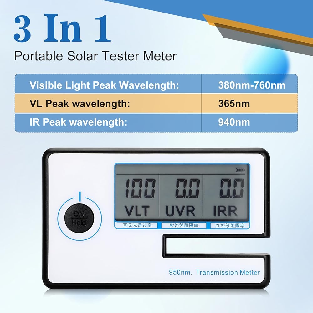 جهاز قياس الطاقة الشمسية المحمول، 3 في 1 مقياس نقل السيارة بفيلم شمسي ملون، LS162 جهاز اختبار الزجاج المصور، إمكانية القياس السريع، IR 950nm UV 36nm VR 550nm LS162