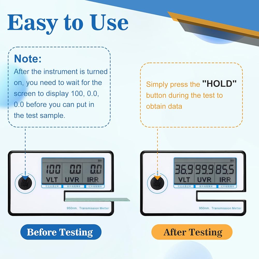 【استخدام واسع】يمكن استخدام جهاز اختبار الطاقة الشمسية المحمول الخاص بنا لقياس الزجاج الأمامي للسيارة، وزجاج الفيلم، وتلوين الزجاج، والمزيد. ويتم استخدام جهاز اختبار الزجاج المصور الخاص بنا في مجموعة متنوعة من التطبيقات مثل الإنتاج والفحص ومبيعات الأفلام وعرض الأداء.