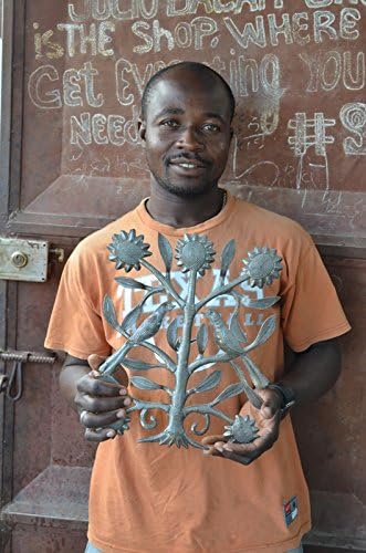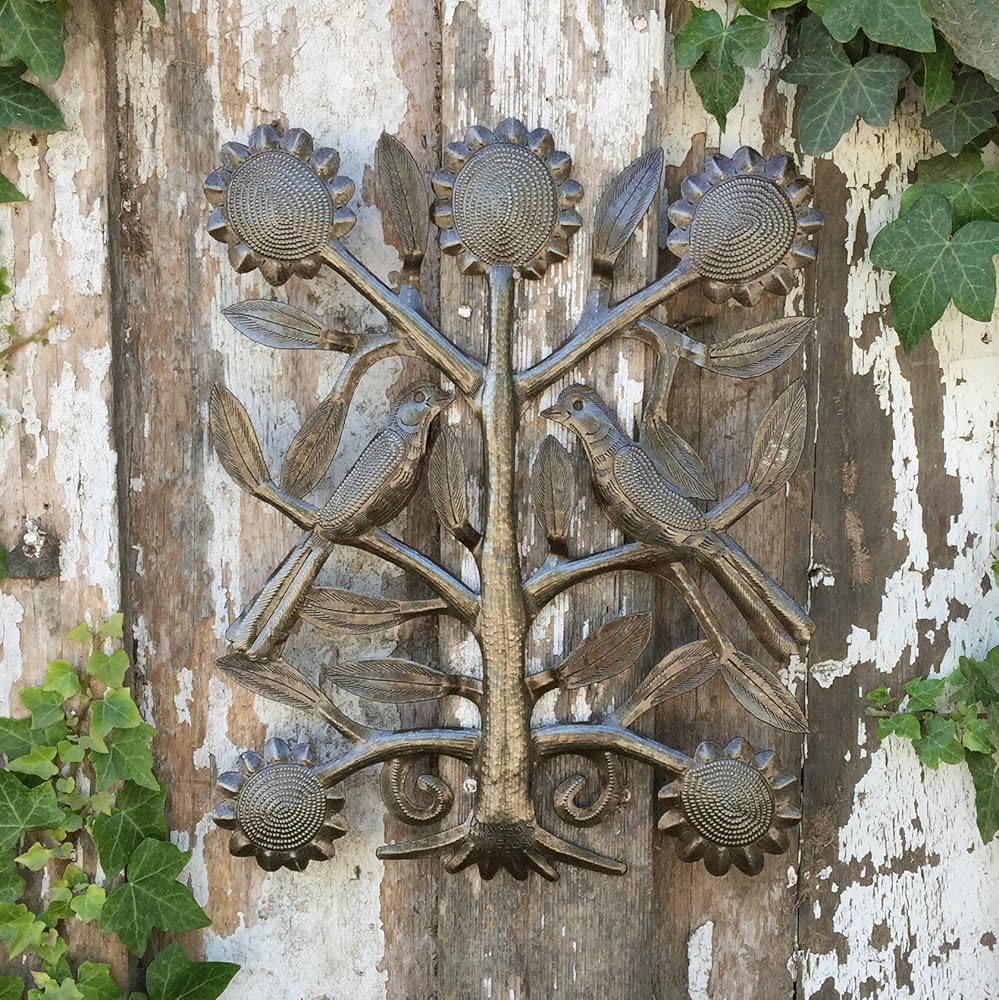 إنها شجرة الصبار المعدنية الصغيرة للحياة، لوحة زخرفية لطيور الحب، فن معدني هايتي معلق على الحائط، طبلة زيت H 10.5 × 13.5 بوصة مصنوعة يدويًا