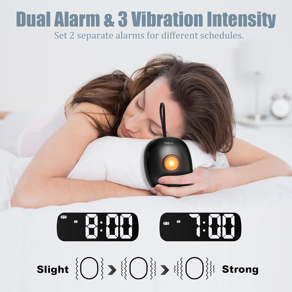 منبه اهتزاز من تريلك للنوم الثقيل، منبه هزاز للسرير تحت الوسادة للطلاب/الكبار/ضعاف السمع/الأزواج، استيقظ مع اهتزاز، ساعة منبه محمولة للسفر، الاستخدام المنزلي