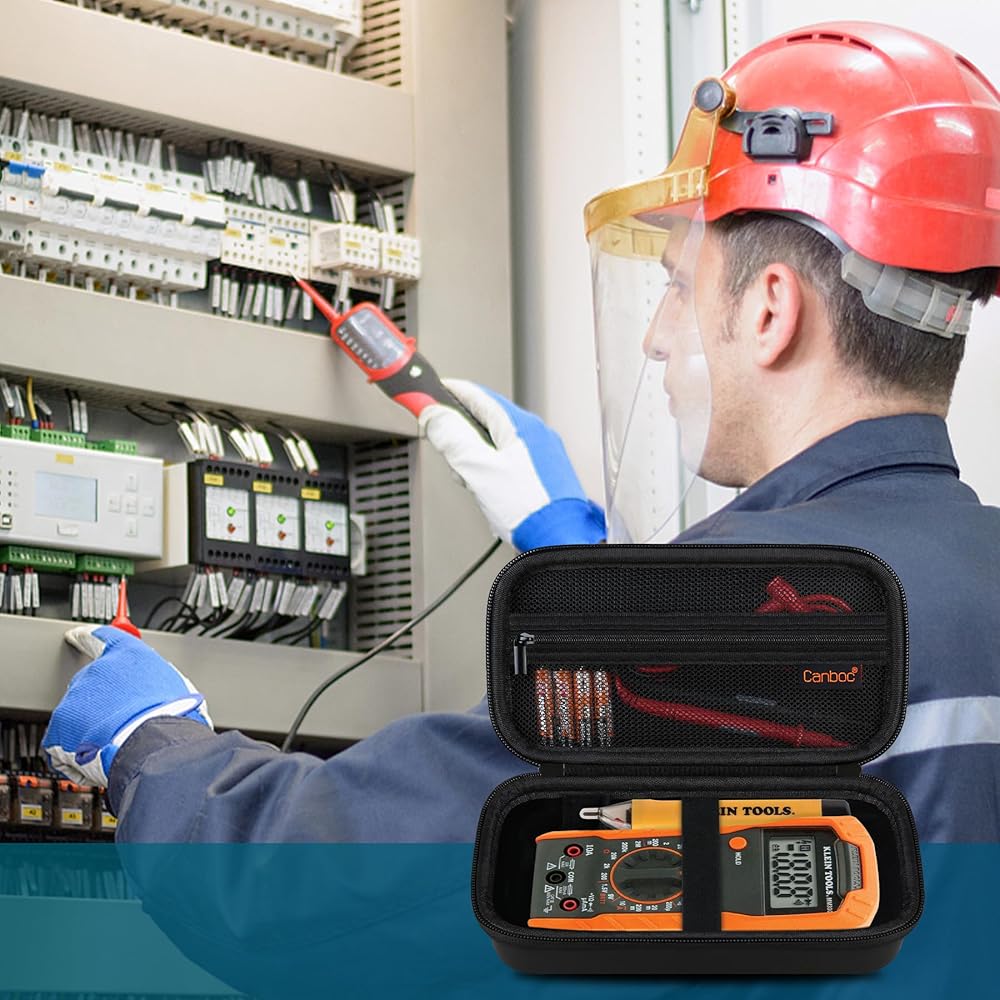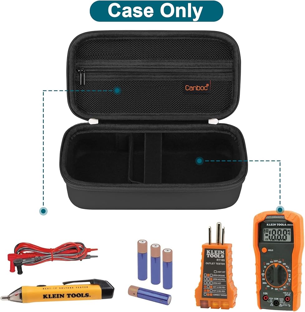 【ملاءمة مثالية】 الجراب فقط! (لا يتم تضمين المقياس الرقمي المتعدد والملحقات). استبدال علبة مجموعة اختبار متعددة القياسات لأدوات كلاين 69149P / 69355 مجموعة اختبار كهربائية مع مقياس رقمي متعدد، واختبار الجهد الكهربي غير المتصل واختبار المنفذ الكهربائي، والسلاسل والبطاريات.