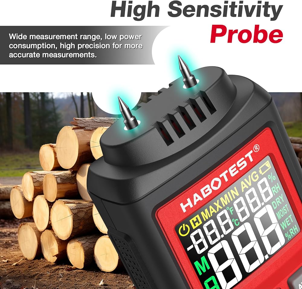 【مقياس رطوبة متعدد الاستخدامات】يوفر مقياس الرطوبة HABOTEST إمكانيات المسح الضوئي من النوع الدبوس وبدون دبوس في جهاز واحد مناسب. يعد وضع المسح بدون دبابيس مثاليًا للعديد من الأخشاب ومواد البناء، حيث يوفر قياسات غير جراحية مناسبة للأسطح الحساسة، بينما يوفر وضع نوع الدبوس استجابة أسرع ودقة أعلى لمجموعة واسعة من التطبيقات.