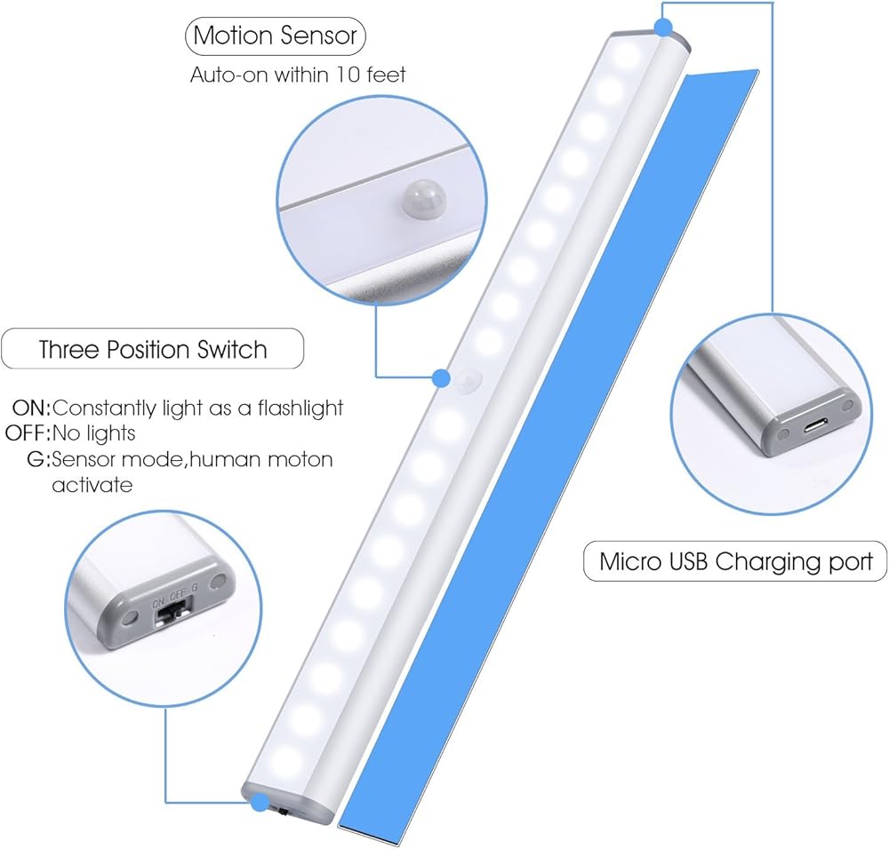 Super Bright & Rechargeable: Closet Lights Built-in 1500mAh rechargeable polymer lithium high-capacity battery, via the included USB cable, use a cell phone/USB cord PC, laptop, power bank to charge it.
