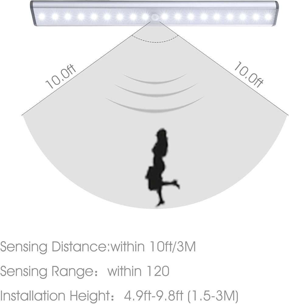 Motion Sensor: Automatically senses human motion within 10ft/120°and shuts off after about 20 seconds of no movement.