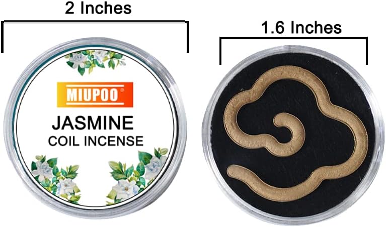 بخور لفائف الياسمين من ميوبو، كل بخور على شكل سحابة يأتي مع رف بخور محمول للسفر في الهواء الطلق، عبوة مكونة من 20 قطعة من لفائف بخور الياسمين، ملف واحد لحرق البخور لمدة ساعة تقريبًا.