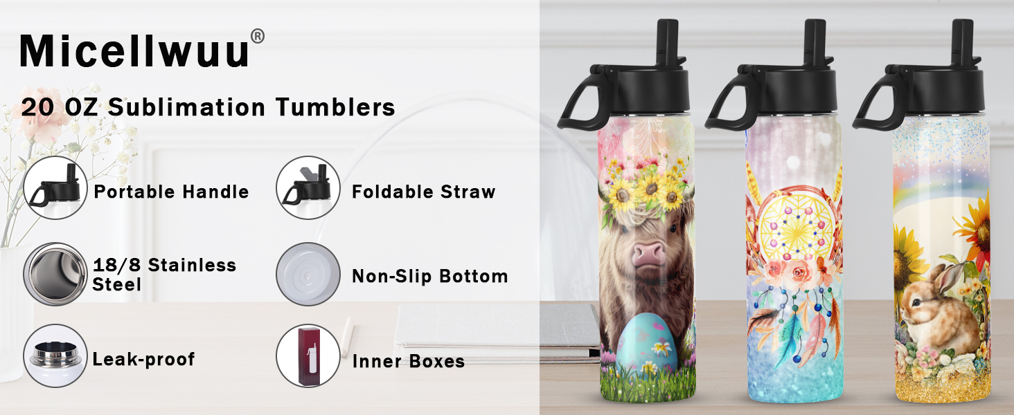 تقنية الشفط مزدوجة الجدار: تستخدم زجاجة المياه الفراغات التسامي الخاصة بنا تقنية الشفط مزدوجة الجدار، والتي يمكن أن تحافظ على الماء دافئًا وباردًا، حتى تتمكن من شرب الماء المثلج في الصيف والماء الساخن في الشتاء، مما يوفر الراحة لحياتك. الكوب سعة 22 أونصة مصنوع من مادة الفولاذ المقاوم للصدأ القوية.