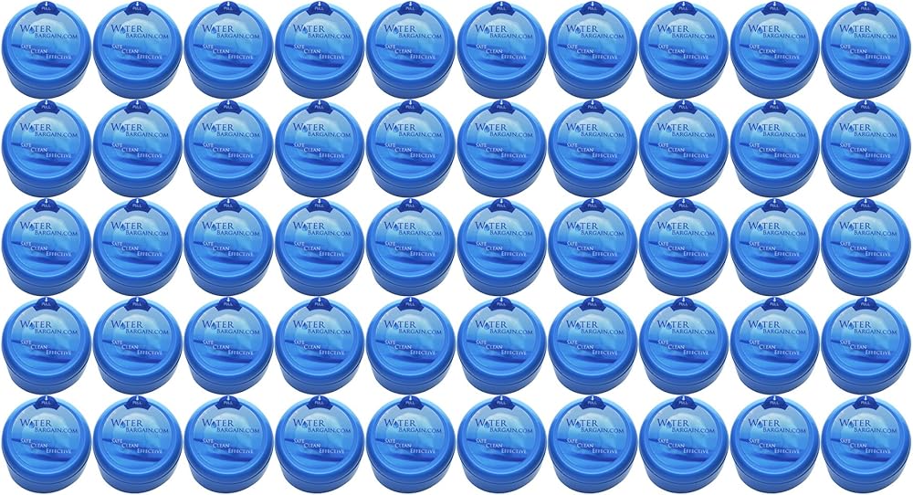 مشبك عالمي على الأغطية: أغطية زجاجات المياه ذات الاستخدام الواحد من Water Bargain تناسب فتحة الزجاجة القياسية مقاس 55 مم. إنها أغطية إبريق ماء غير مترابطة تعمل كغطاء عالمي لزجاجة المياه. ما عليك سوى تثبيت غطاء زجاجة المياه وسحب العروة للخلف عندما تكون جاهزًا للاستخدام. يمكن أن يناسب غطاء غطاء إبريق الماء أباريق سعة 2 أو 3 أو 5 أو 6 جالون.
