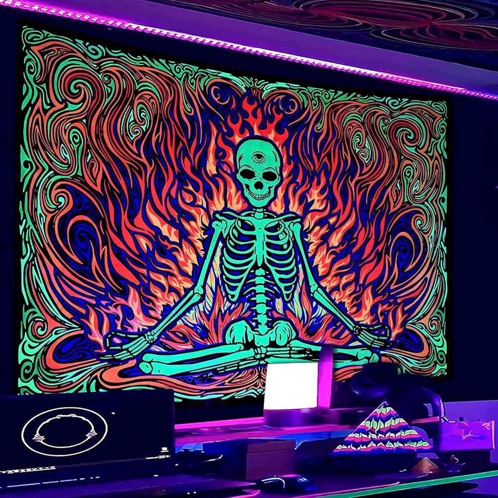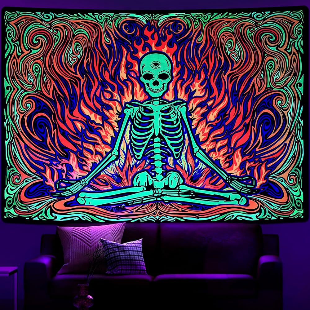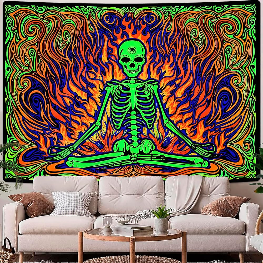 خامة فاخرة: مصنوع من نسيج بوليستر عالي الجودة، نسيج الجمجمة الخاص بنا متين وناعم وخفيف الوزن، مما يجعل من السهل تعليقه وتحريكه. ستبقى الألوان النابضة بالحياة والأنماط الجريئة نابضة بالحياة لسنوات قادمة.