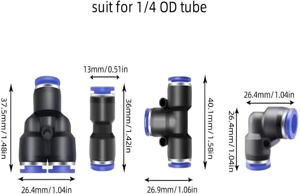✅Includes - 40 pcs push to connect fittings pneumatic fittings kit(10pcs splitters 1/4",10pcs elbows 1/4",10pcs tee 1/4",10pcs straight 1/4"), If you have any questions, please feel free to contact us and we will get back to you within 24 hours.