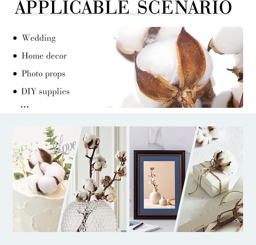 تطبيقات واسعة - باقة القطن الخاصة بنا مثالية لتزيين الهالوين أو عيد الشكر، وترتيب القطع المركزية، وتزيين طاولة المزرعة، وقطعة مركزية من القطن لحفلات الزفاف، وترتيب الزهور، وحشو المزهرية، وديكور الزفاف، وما إلى ذلك. لوازم الحرف اليدوية المثالية التي تصنعها بنفسك.