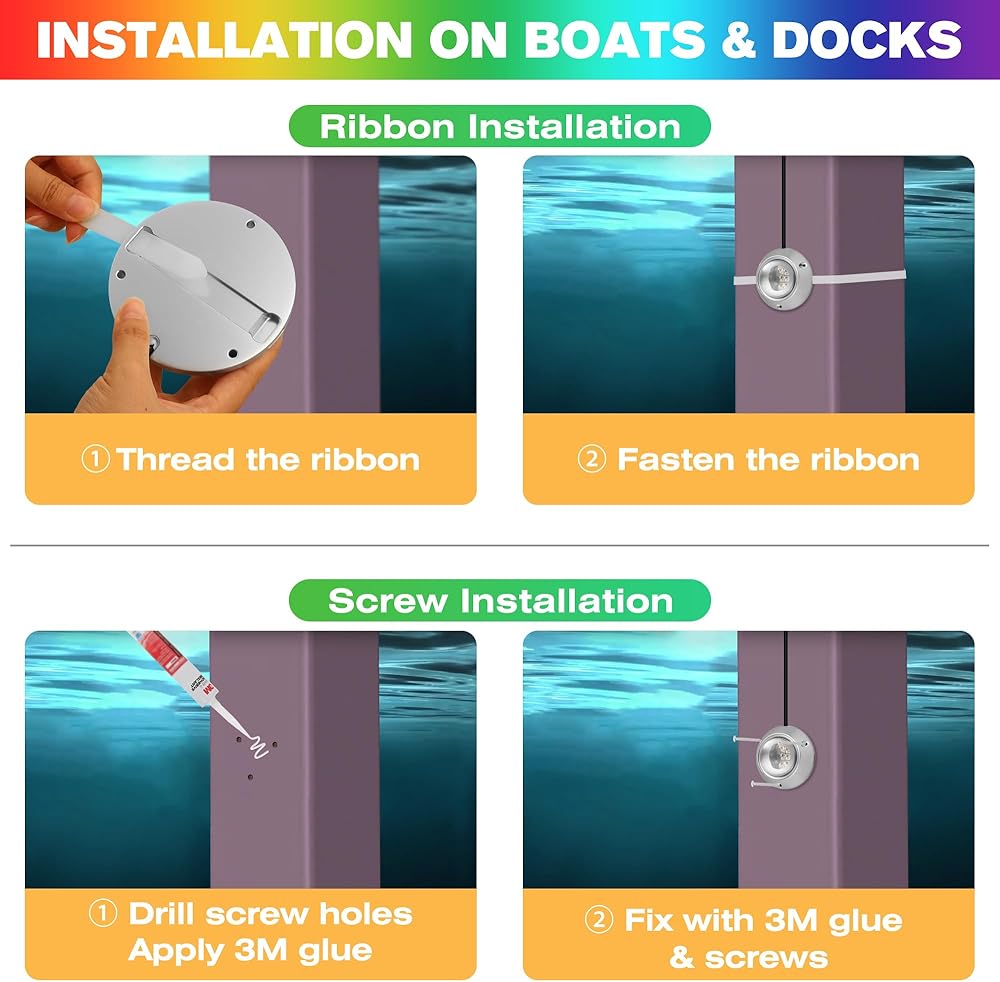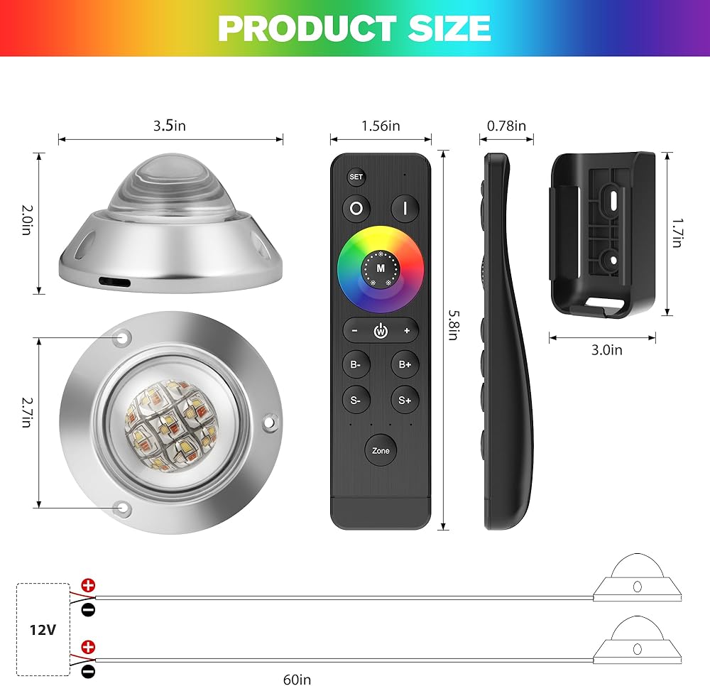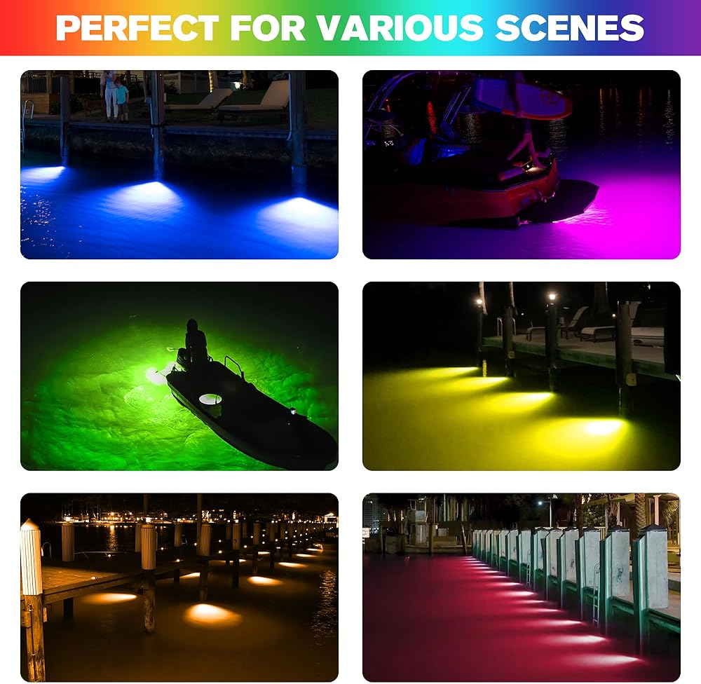 • 【أعلى المواد البحرية】إضاءة قاعدة متغيرة الألوان فائقة السطوع √ مصابيح إرساء تحت الماء √ 12 فولت 60 وات 9LED 6000LM√ RGB 5050LEDs √ شريحة حاصلة على براءة اختراع √ 3.5 بوصة √ غراء IP68 مملوء بالكامل (للاستخدام تحت الماء فقط) √ هيكل معدني مصنوع من سبيكة معدنية مضادة للتآكل √ سلك نحاسي معلب √ منفذ أسلاك شخصي √