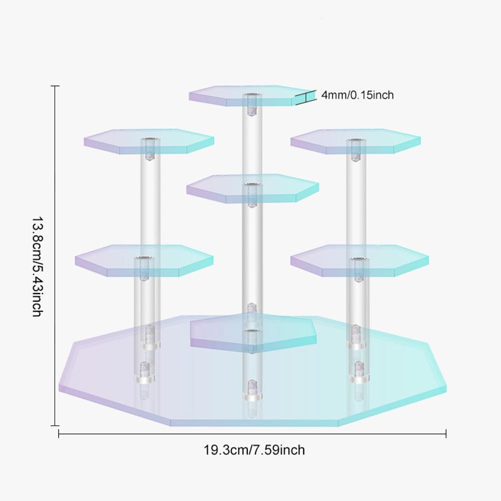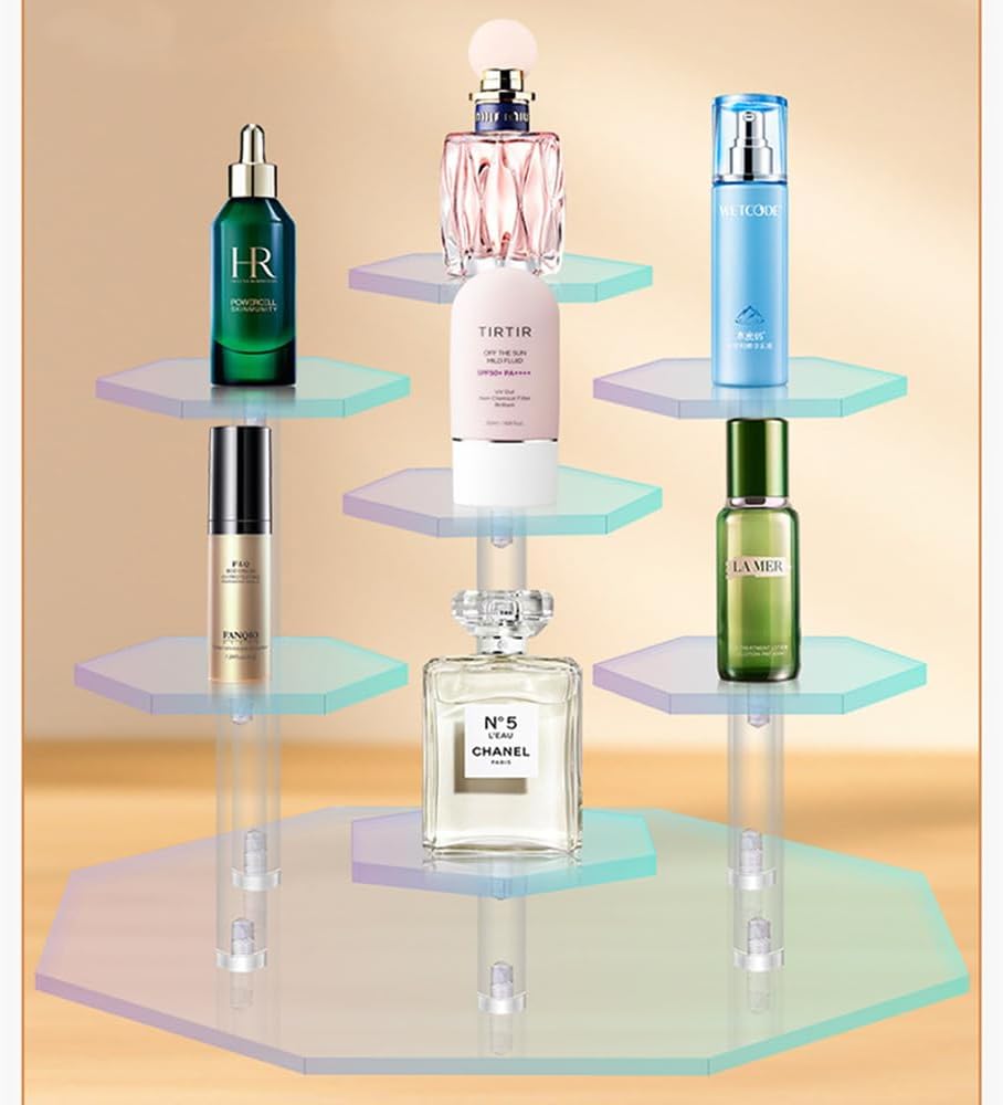 • تأثير فريد: يحتوي رف العرض على 7 أماكن، باستخدام تصميم شبه منحرف متعدد الطبقات، وتسلسل هرمي واضح. يمكن لألواح الأكريليك الملونة بألوان قوس قزح أن تنكسر ألوانًا مختلفة من زوايا مختلفة، مما يجعل التأثير جميلًا وأنيقًا.