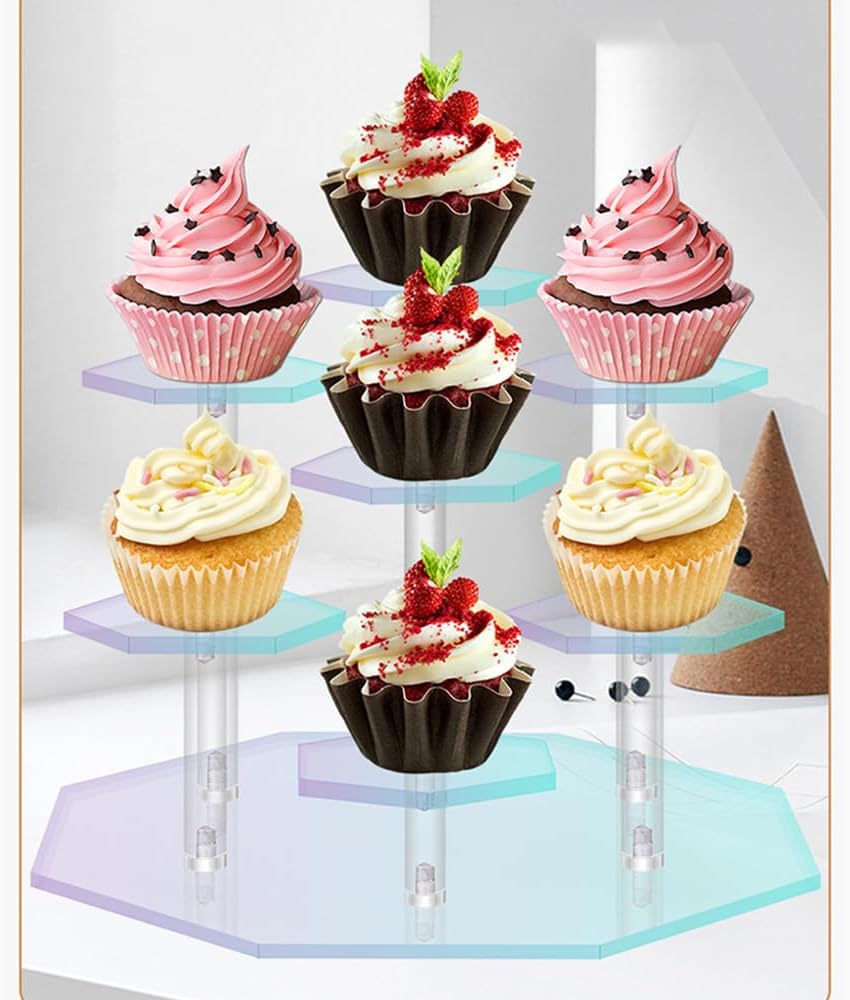 • حامل عرض متعدد الوظائف: لا يمكن استخدام حامل الكب كيك المكون من 3 طبقات لعرض الكعك والحلويات في الحفلات أو التجمعات فحسب، بل أيضًا المجوهرات والعطور ومستحضرات التجميل والألعاب والدمى والمقتنيات وما إلى ذلك.