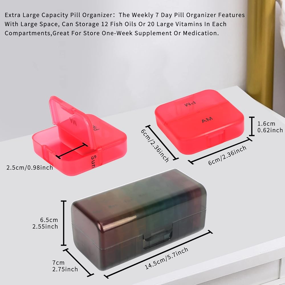 【تتبع حبوب الدواء الخاصة بك】يحافظ منظم الأدوية هذا لمدة 7 أيام على تتبع أفضل ويحافظ على الدواء مرتين في اليوم (صباحًا/مساءً)، تحتاج فقط إلى ملء منظم حبوب الدواء الخاص بنا مرة واحدة في الأسبوع.