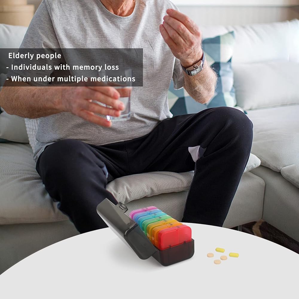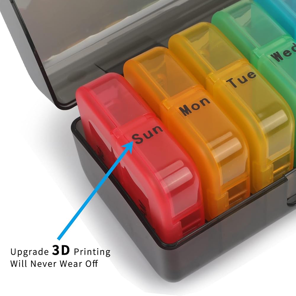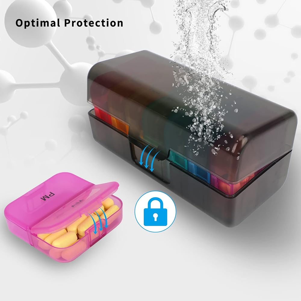 【حماية مزدوجة】تحتوي الحاوية الخارجية وكل صندوق حبوب يومي على أغطية محكمة الإغلاق لمقاومة الفتح حتى عند سقوطها، مما يحافظ على سلامة الدواء.