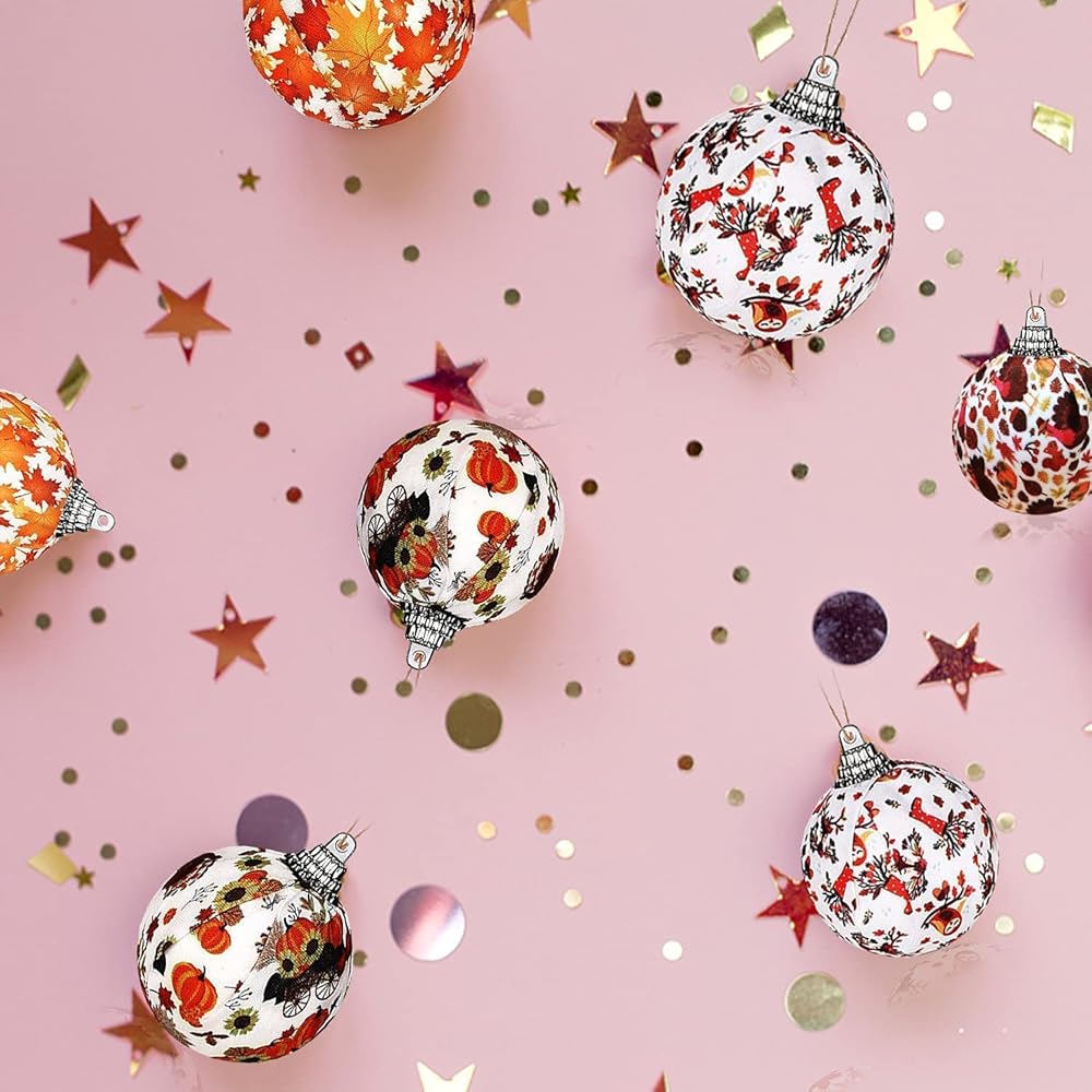 • 🍁ديكور الخريف: هناك بعض أنماط موضوع الخريف على الكرات المغلفة بالقماش المعلق، مثل أوراق القيقب والقرع والديك الرومي وأكثر من ذلك، زاهية وملونة، وجميلة وأنيقة، املأ منزلك برائحة حصاد الخريف.