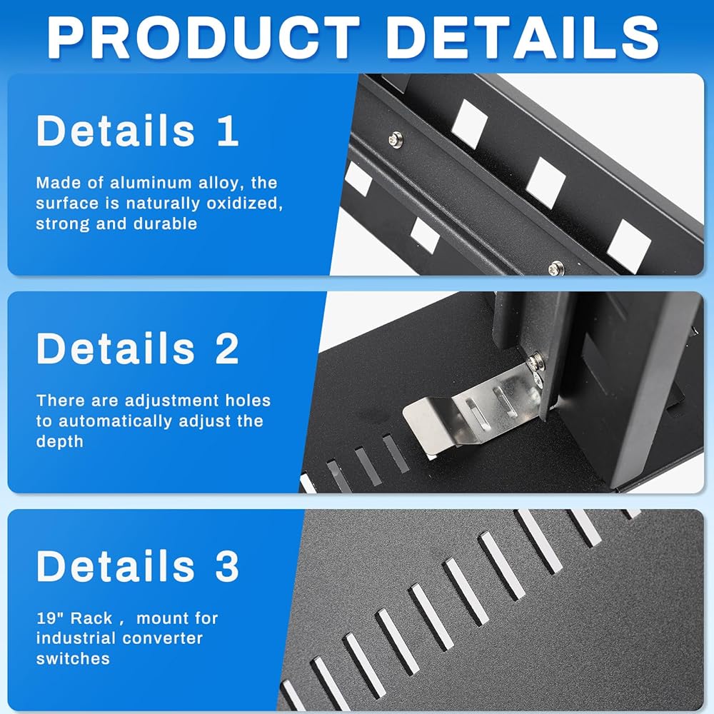 With its slim dimensions of about 19 x 3.63 x 9.84 inches/ 482.6 x 92.2 x 250 mm, rack mount DIN rail kit allows you to optimize your space effectively without making your setup look cluttered. Maintain an organized work area while keeping your devices securely mounted and easily accessible.