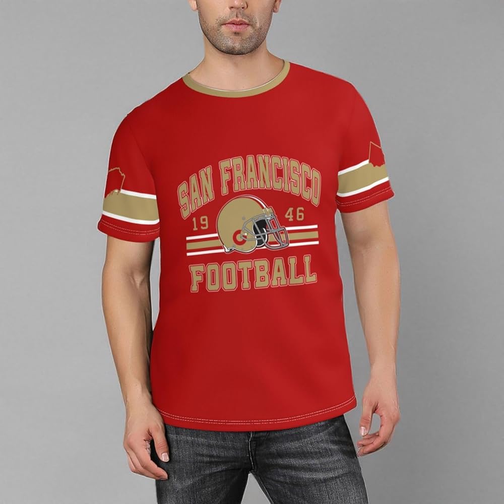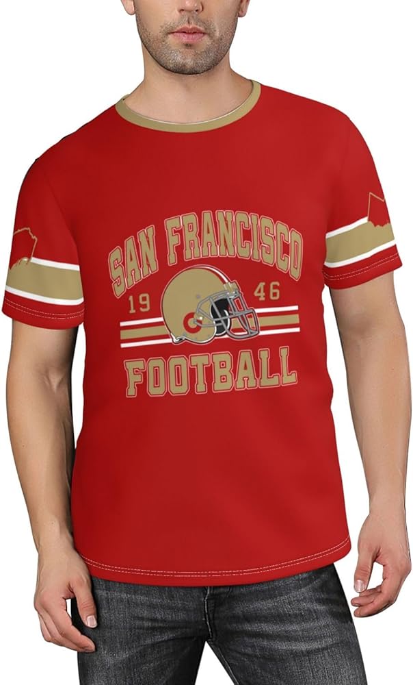 Comfortable and Stylish: This San Francisco T-shirt is designed with both comfort and fashion in mind. It features a classic crew neck and short sleeves, making it perfect for everyday wear or as casual sports attire. The team names are prominently displayed, adding a touch of team spirit to your wardrobe.