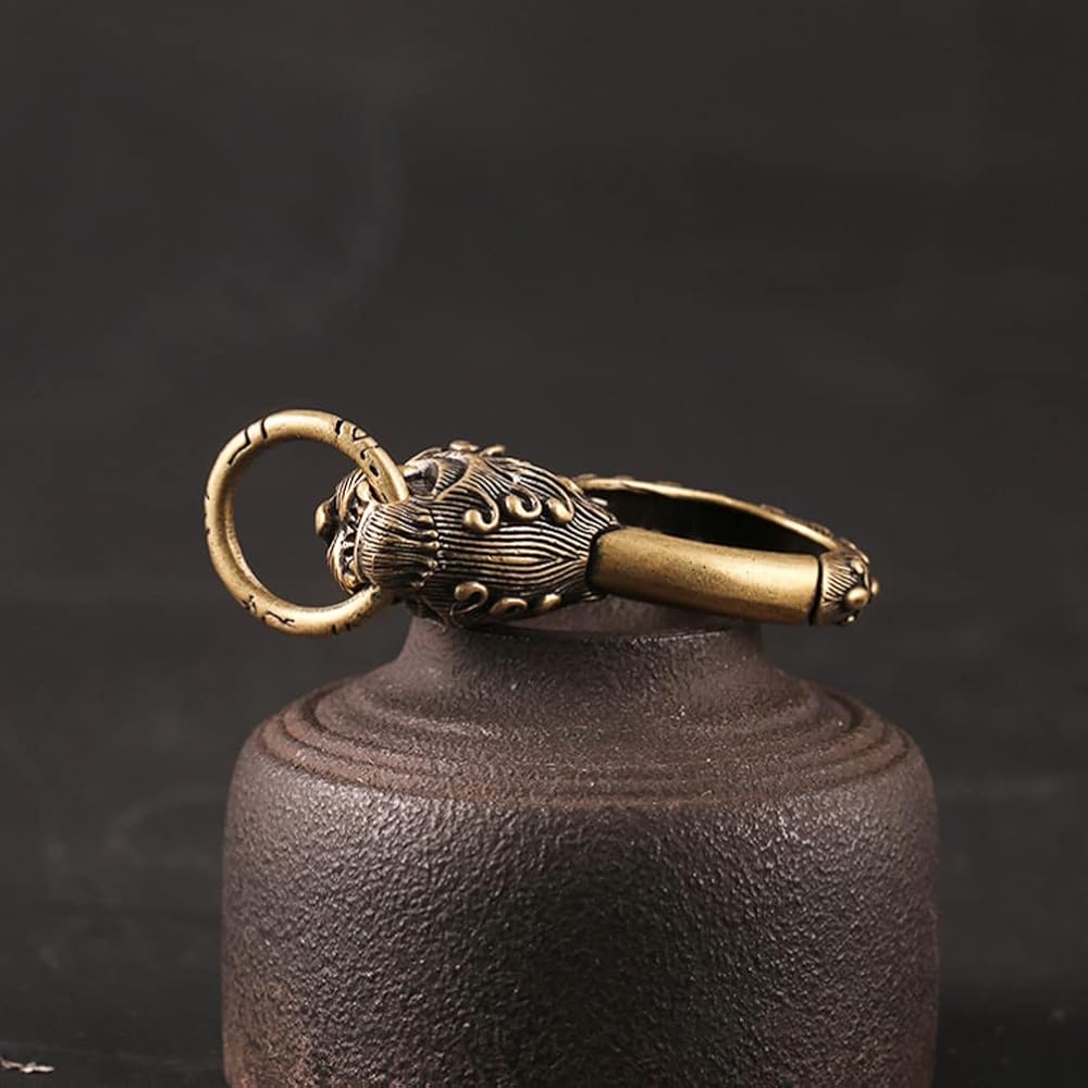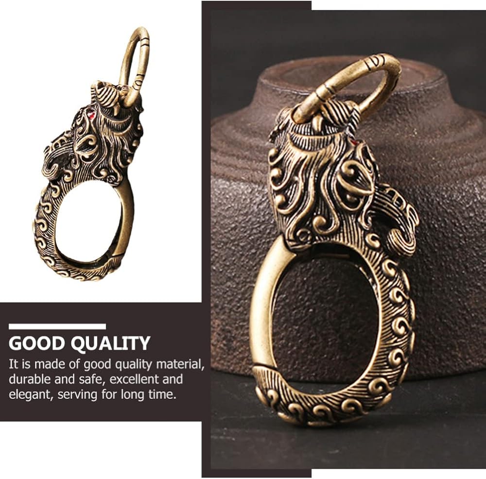 Garneck خمر سلسلة مفاتيح نحاسية النحاس التنين تصميم خطاف تعليق دوّار اليدوية مفتاح سلسلة كيرينغ حلقة تسلق كليب فتاحة الزجاجات