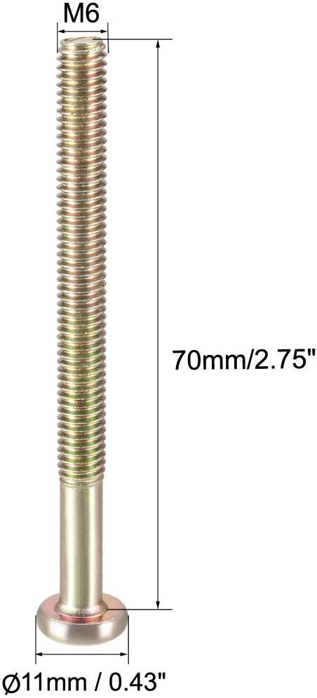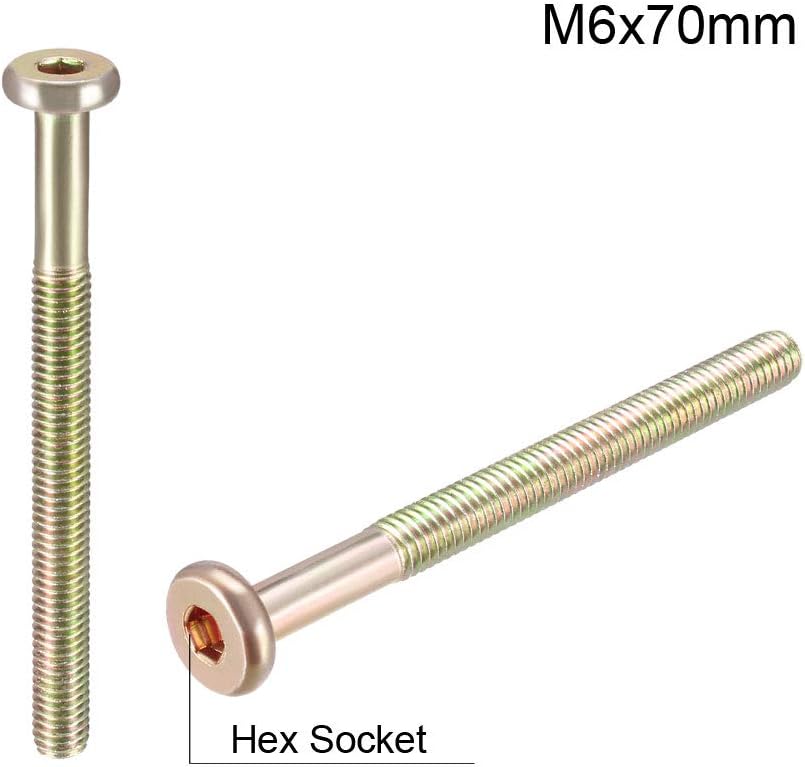 Uxcell M6x70mm مسامير أثاث عرافة المقبس آلة مسامير الزنك مطلي السحابات البراغي نصف الموضوع الكربون الصلب 15 قطعة