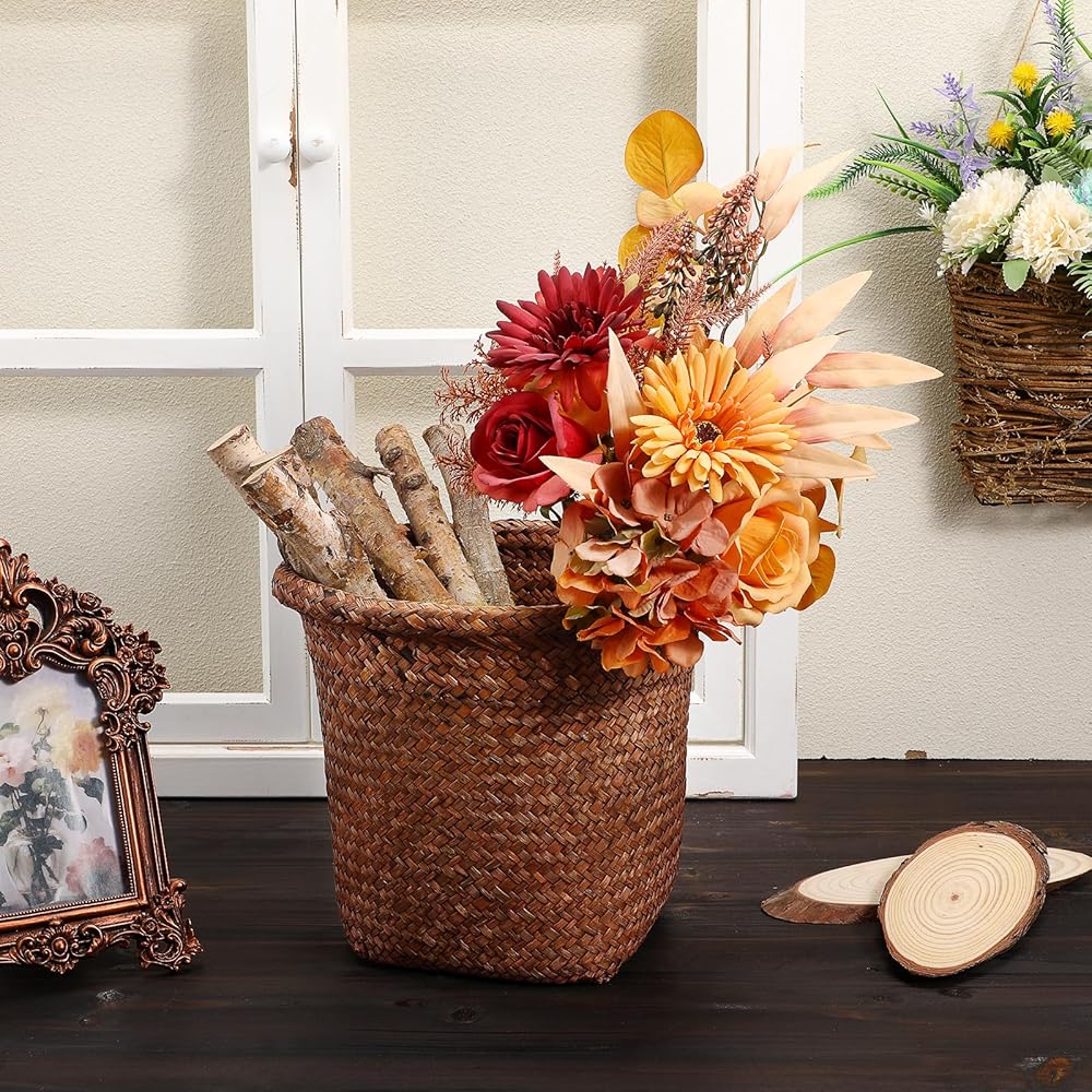 Trash Can 30cm Wicker Wastebasket Hand Woven Garbage Can Trash Container for Home and Office