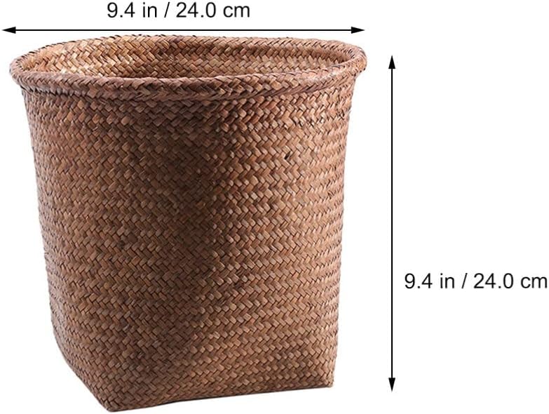 القش المنسوجة من سلة النفايات الخوص يمكن أن تسير القمامة منسوجة يدويًا حاوية سلة راتان سلة لغرفة نوم المكتب المنزلي 9.4in