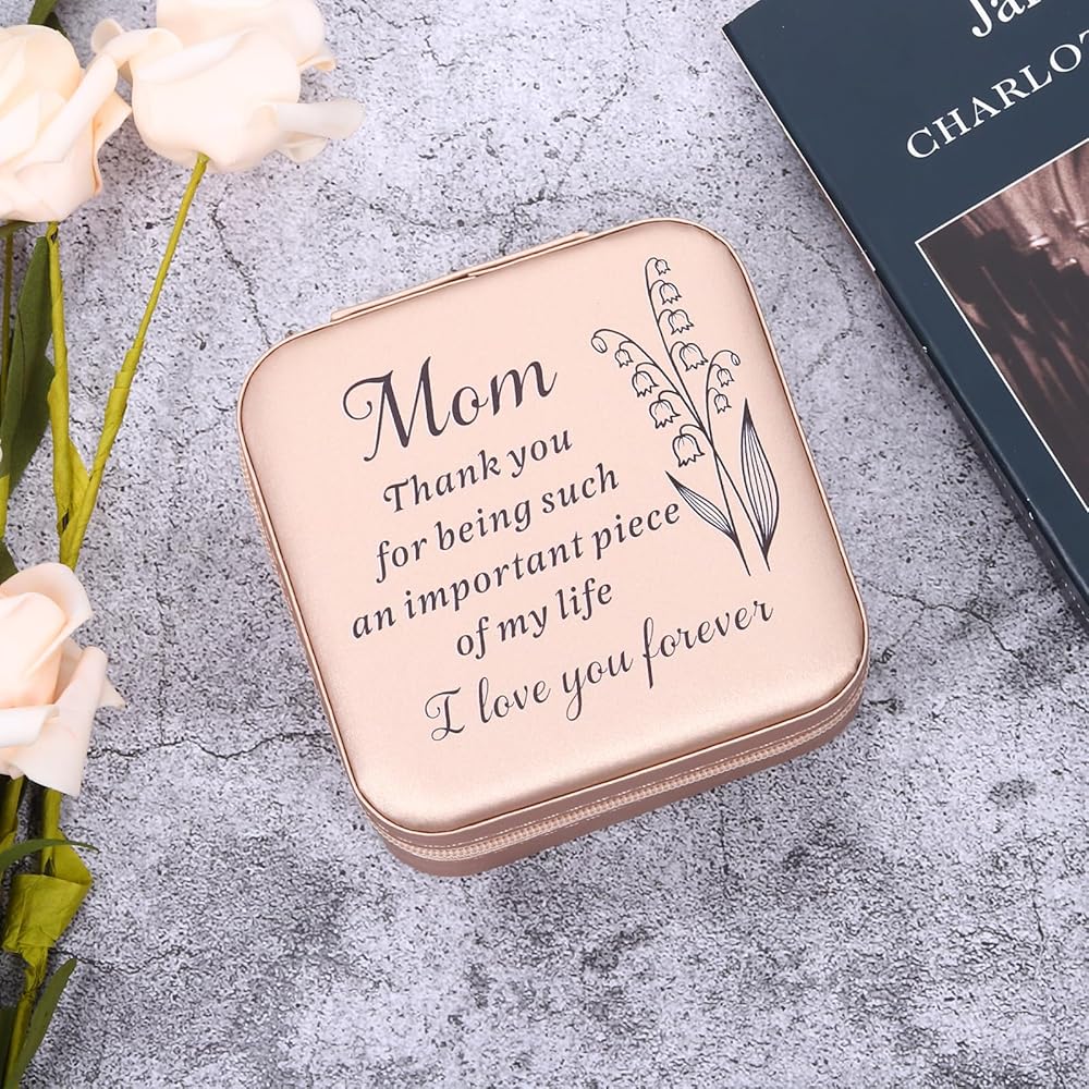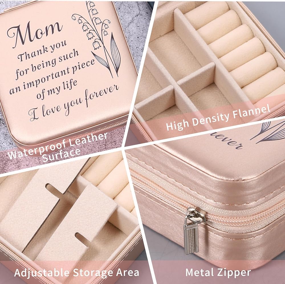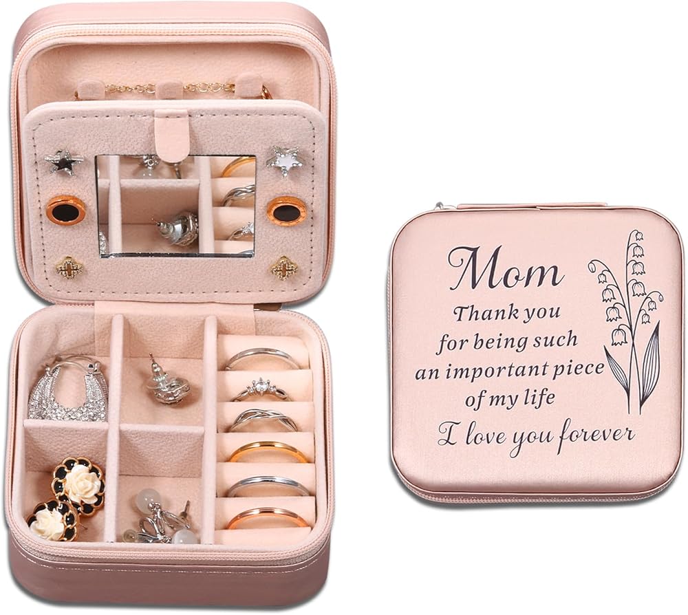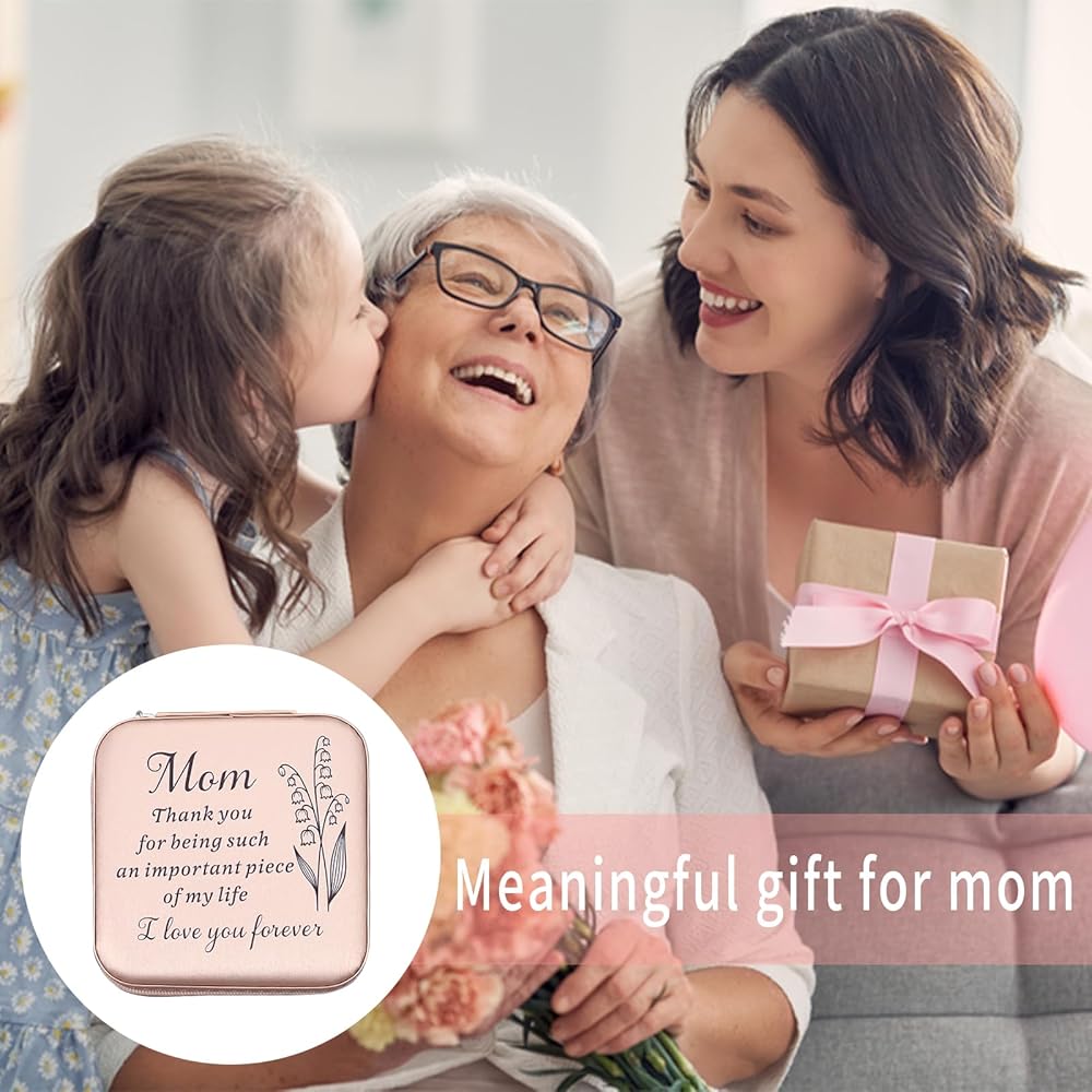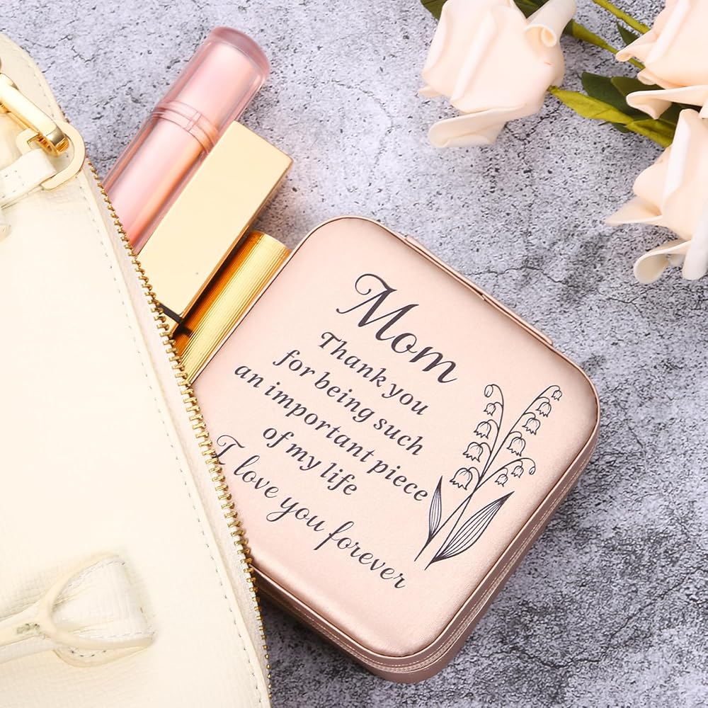 Sentimental Mother's Day Gifts from Daughter: Mom is important to everybody's lives. Mothers love their children and deserve love and appreciation from them every single second, not even every single day. Never miss a chance to say a big thank you to her! This portable travel jewelry case is engraved with a love quote, which is a meaningful gift for a mom who has everything, bringing a smile and happy tears, great Mother's Day gifts for mom from daughter son, Mother Day gift baskets for mom.