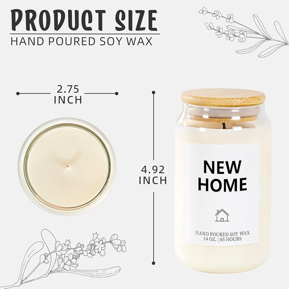 تصميم زجاجي رائع: زين منزلهم الجديد بشمعتنا الزجاجية سعة 14 أونصة المصممة بطباعة "المنزل الجديد" الجريئة بالألوان، مما يوفر وقت احتراق طويل الأمد يصل إلى 85 ساعة. تضيء هدية الانتقال لمنزل جديد مساحتهم بالدفء والراحة، وهي مثالية لخلق أجواء مريحة.