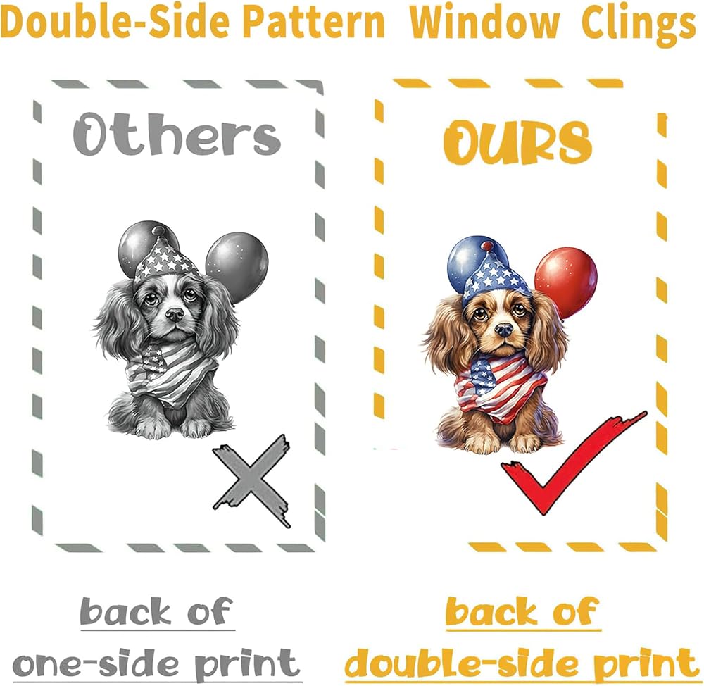 Colorful Independence Day Themed Prints---The window stickers are designed with full of American flag prints in vibrant color,such as cute cat and dongs. Adorable and festive addition to your home decoration in colorful Independence Day season.