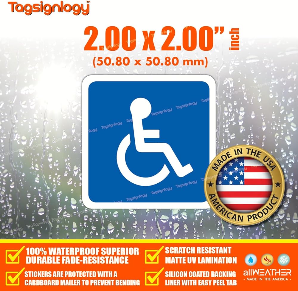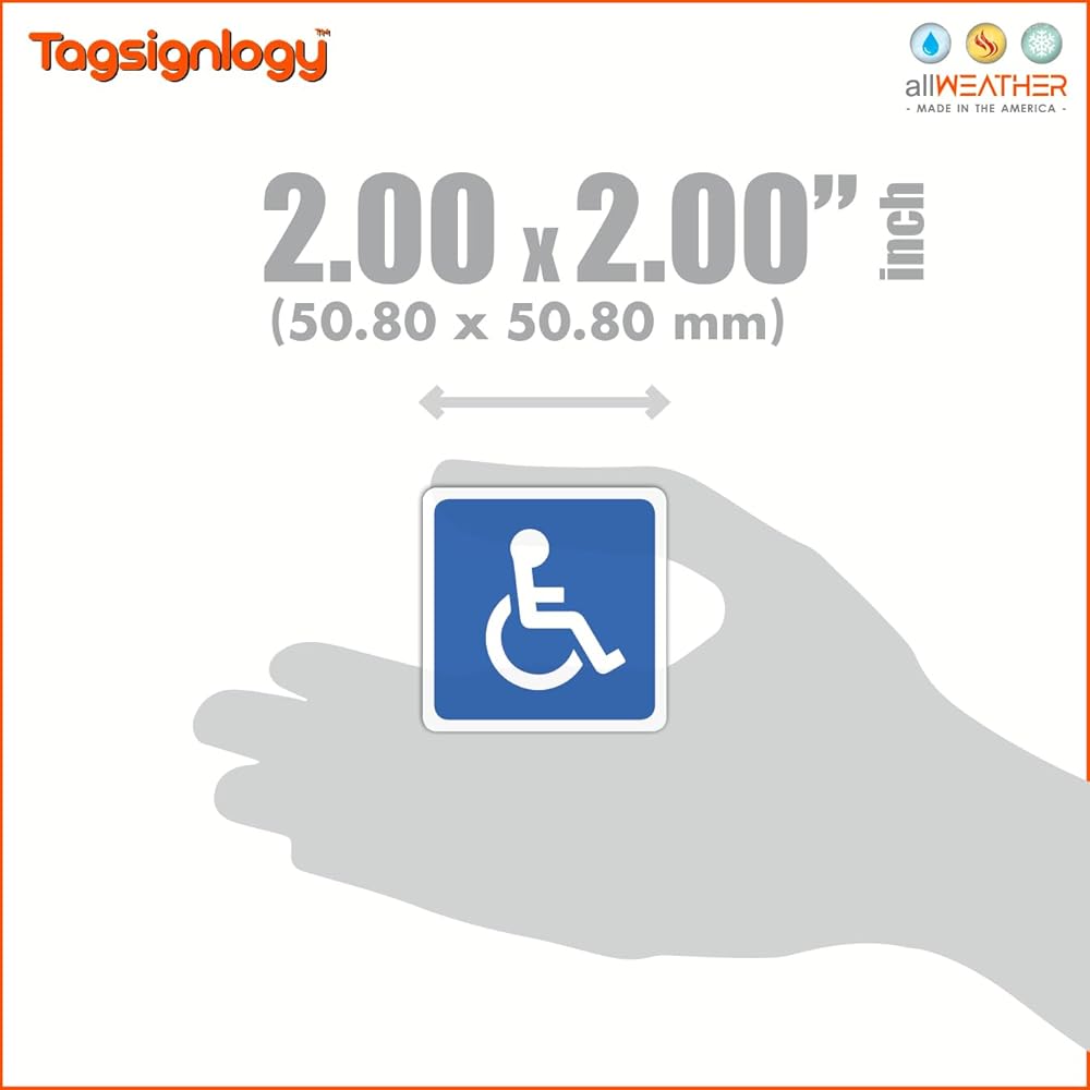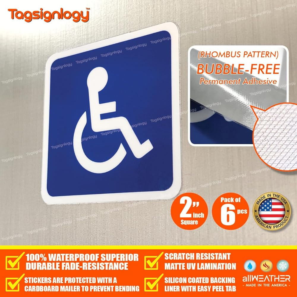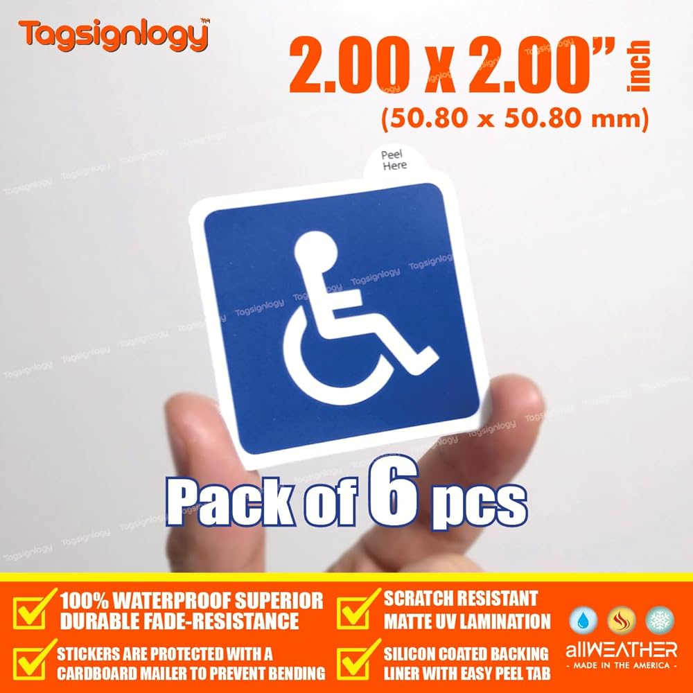 (6 قطع) 2.00 بوصة رمز الكرسي المتحرك للمعاقين في مواقف السيارات، ملصقات لافتة متوافقة مع ADA ومقاومة للأشعة فوق البنفسجية [ضمان مقاومة البهتان لمدة 12 عامًا] ملصقات فينيل مقاومة للماء بشعار يمكن الوصول إليه للمعاقين