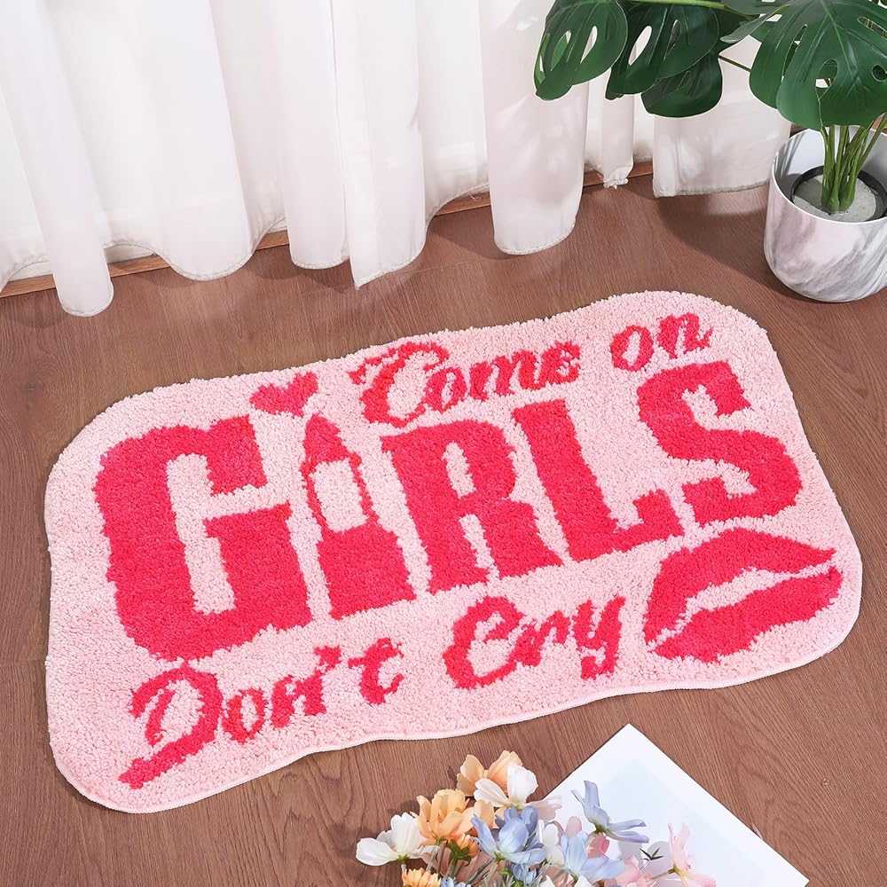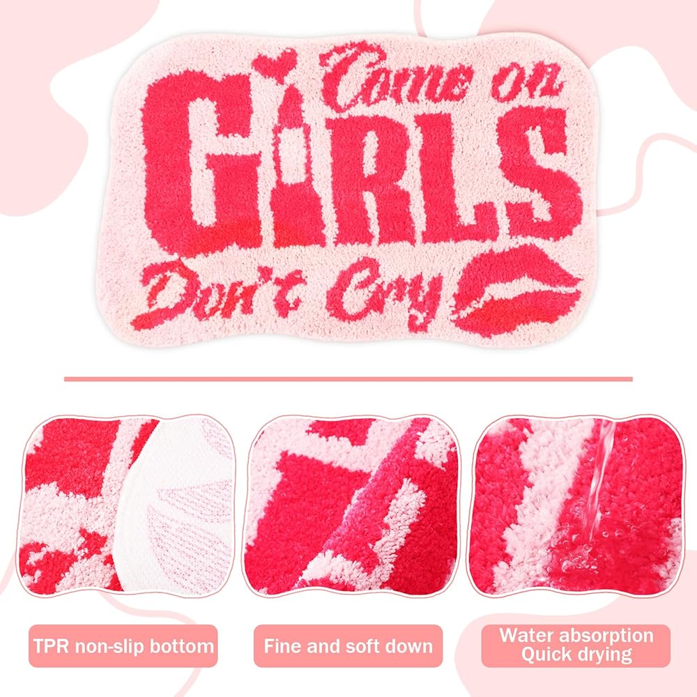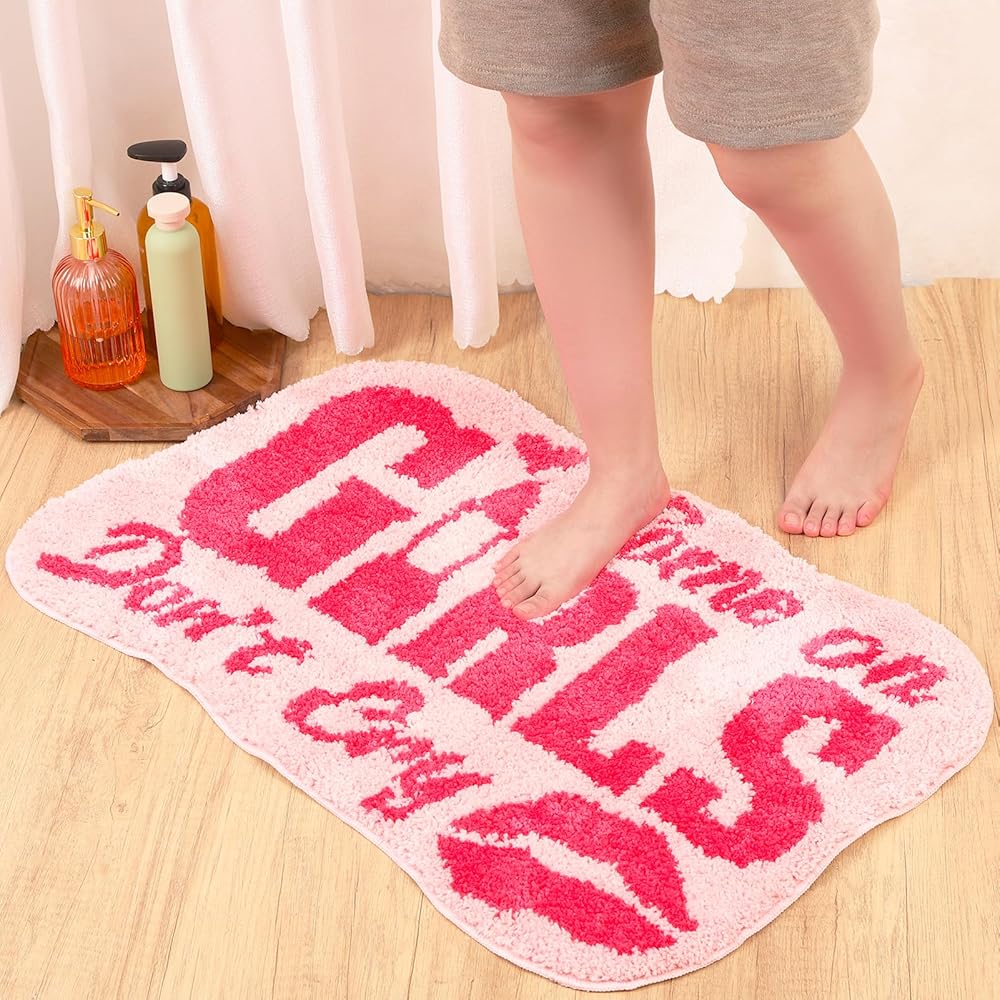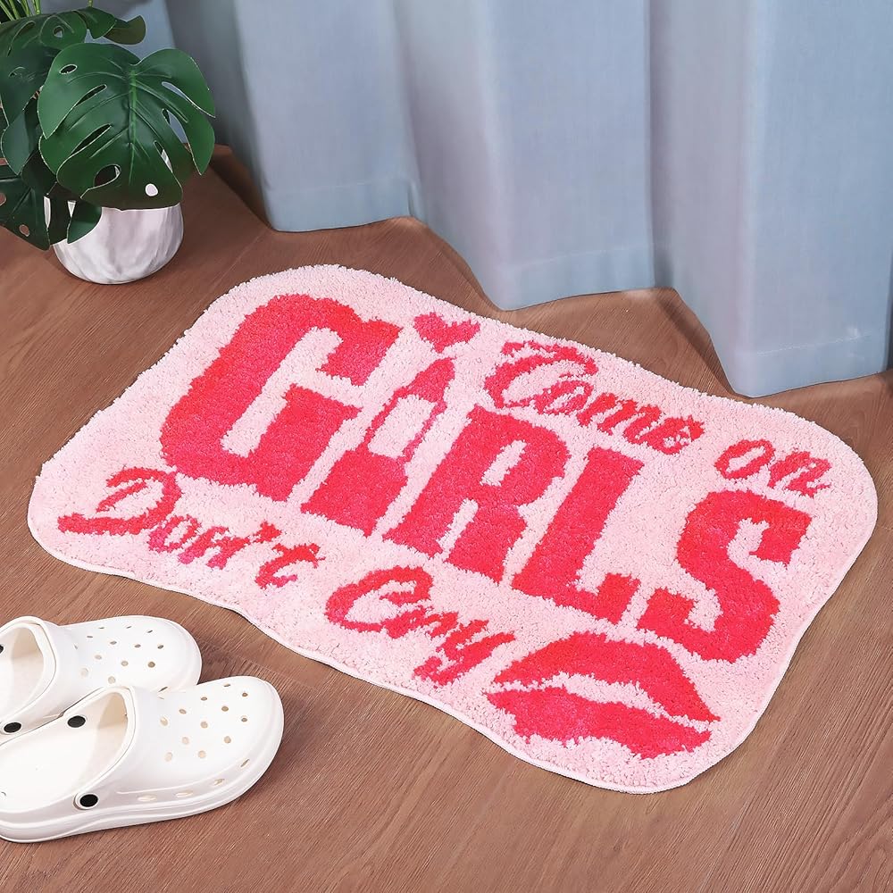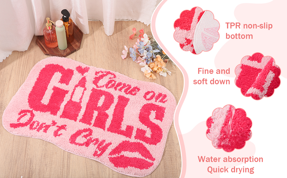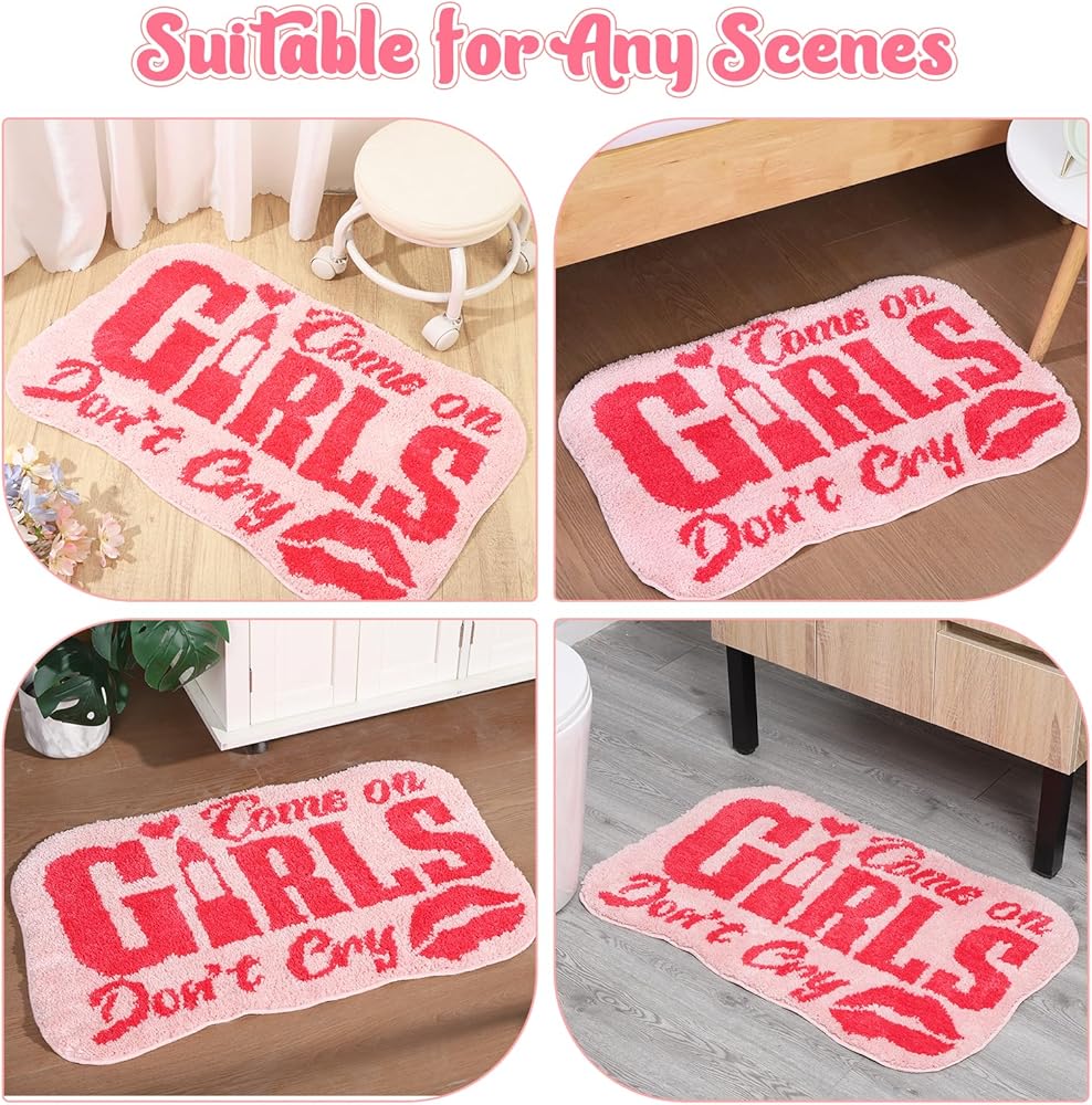 【تصميم نابض بالحياة】مزيج حروف السجادة الوردية هذه من السجاد والحروف ثلاثية الأبعاد "تعال يا فتيات لا تبكي"، مما يمنحها أسلوبها الفريد، وتضيف سجادة الحمام أسلوبًا مرحًا إلى أي غرفة.