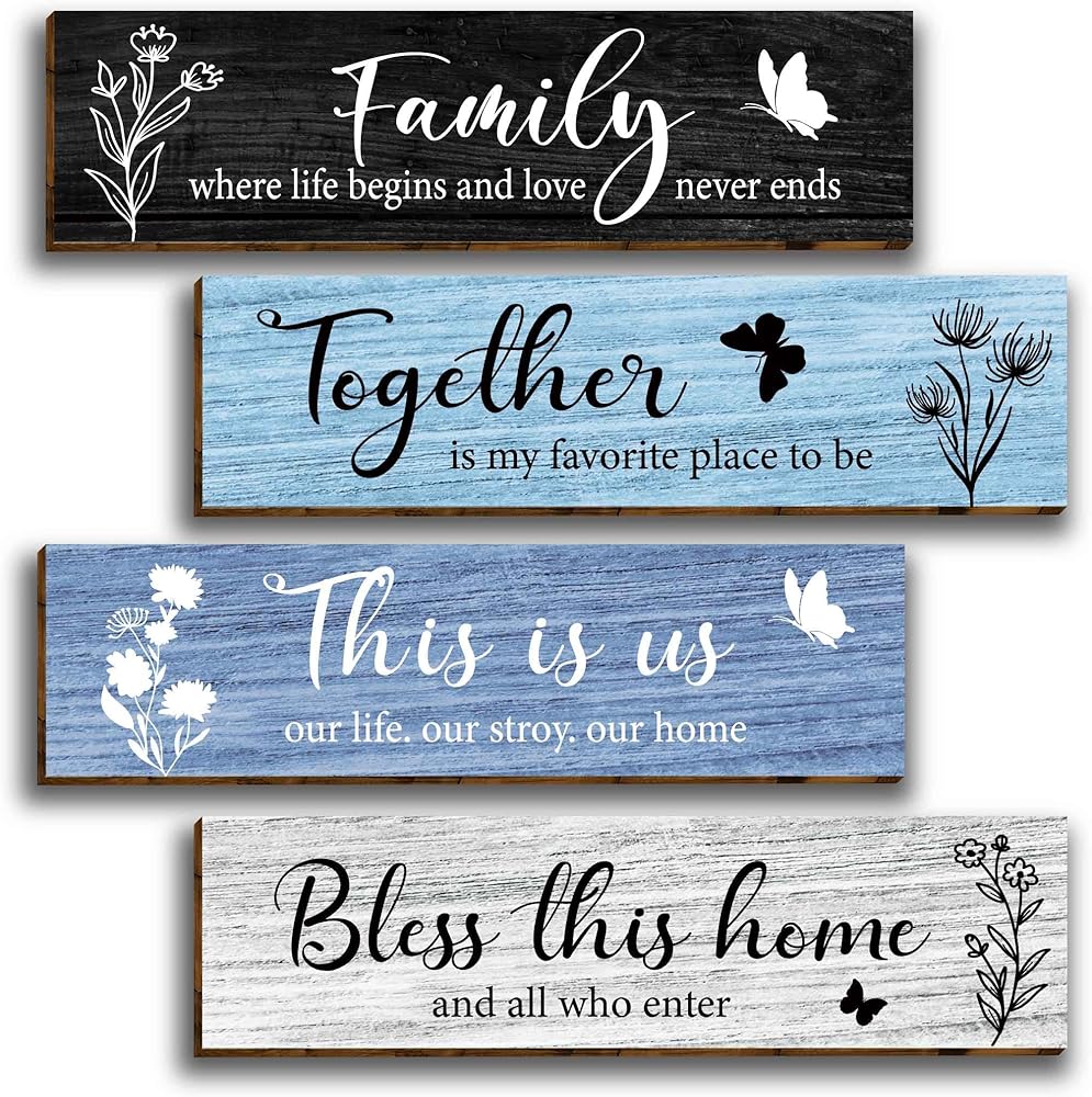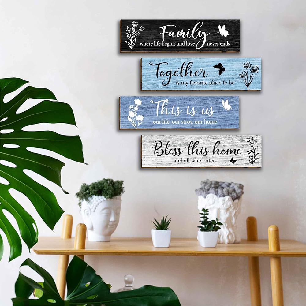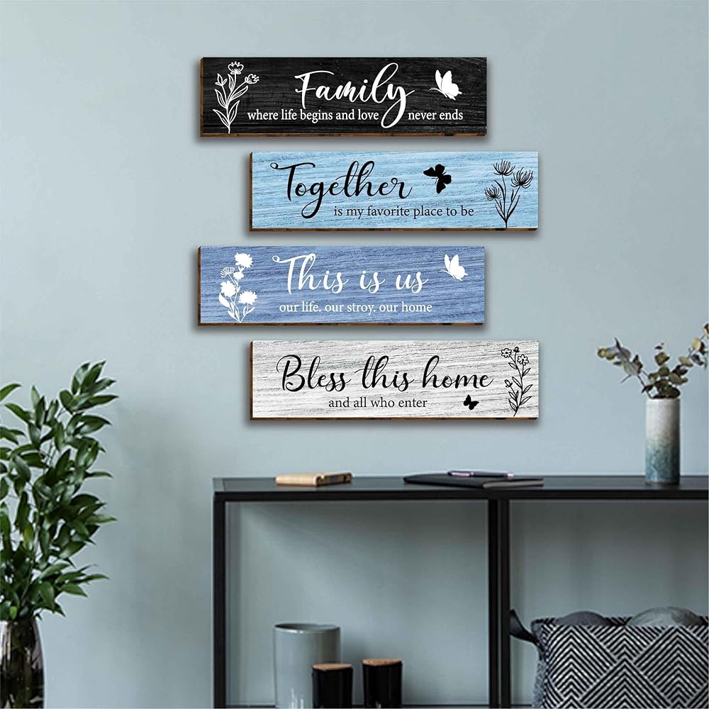 4 قطع لافتات حائط منزلية ديكور فني جداري خشبي، لوحة حائط خشبية ريفية بنية كلاسيكية لمدخل الأسرة، هذه هي حياتنا، قصتنا، لافتات جدارية منزلية، بارك معًا علامة المنزل هذه لغرفة المعيشة