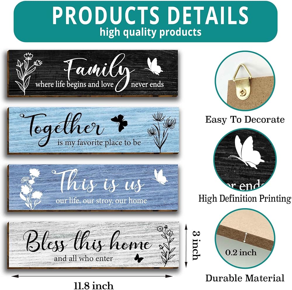 🌱 Materials & Printing: These hanging wooden signs are made of quality wood material. clear and bright printing, sturdy and serviceable, which are reliable and reusable and not easy to fade, deform or break for long term use; Fine workmanship, simple and elegant appearance, classic color, clear words, light and not easy to fade, to provide you with a long term decorative effect.