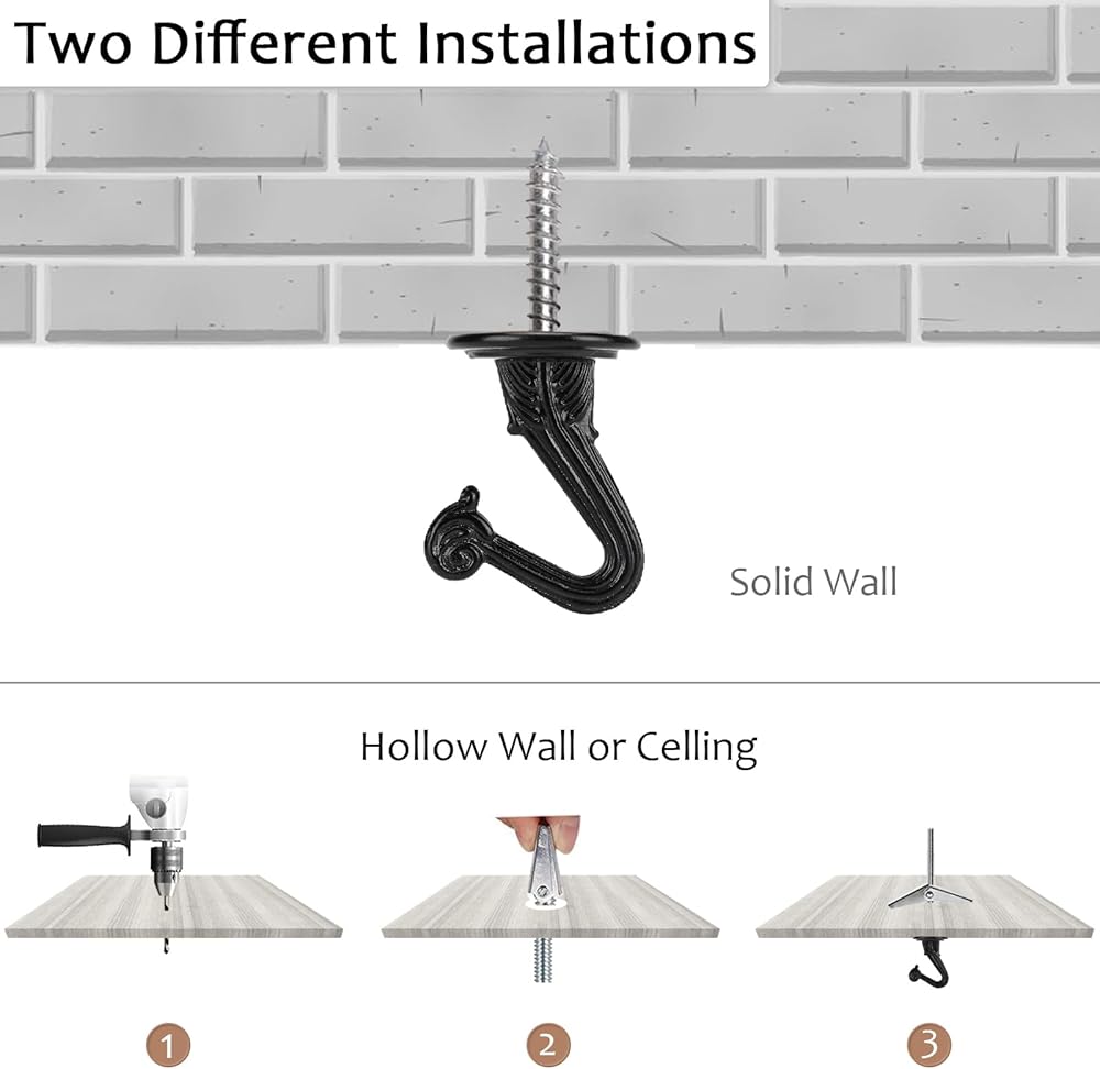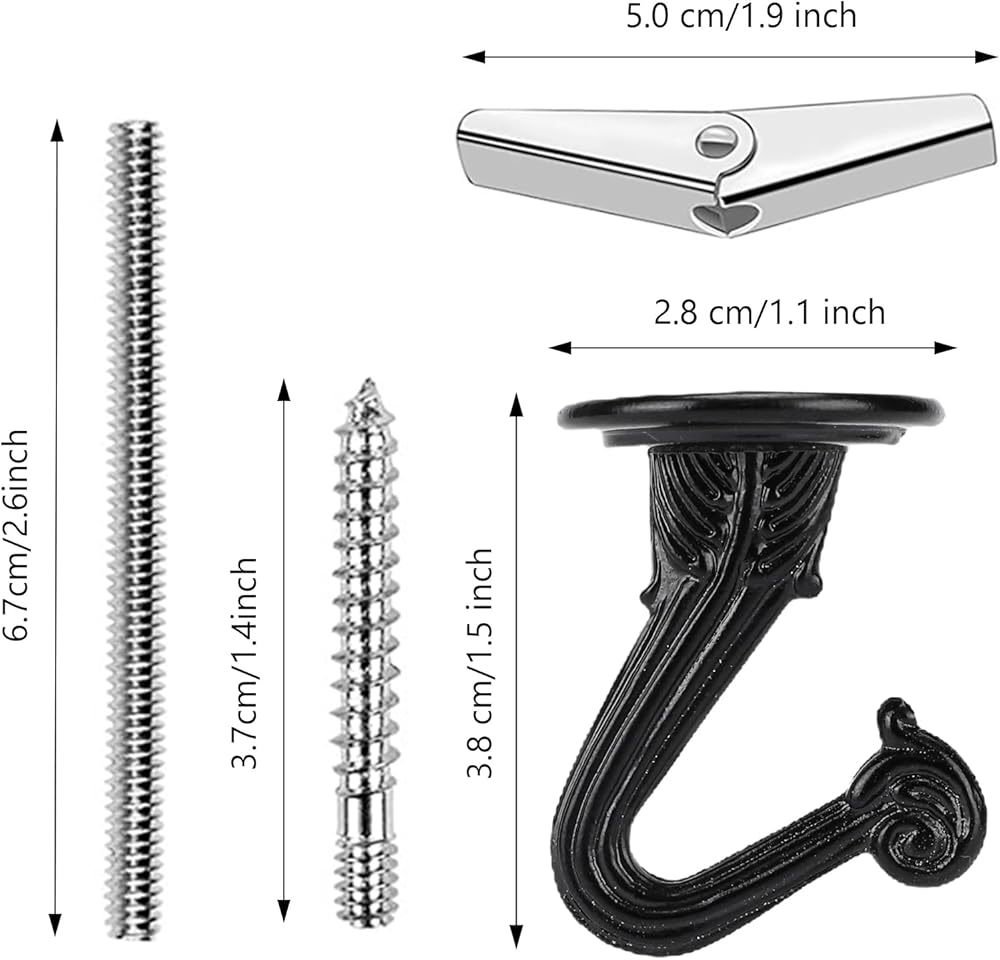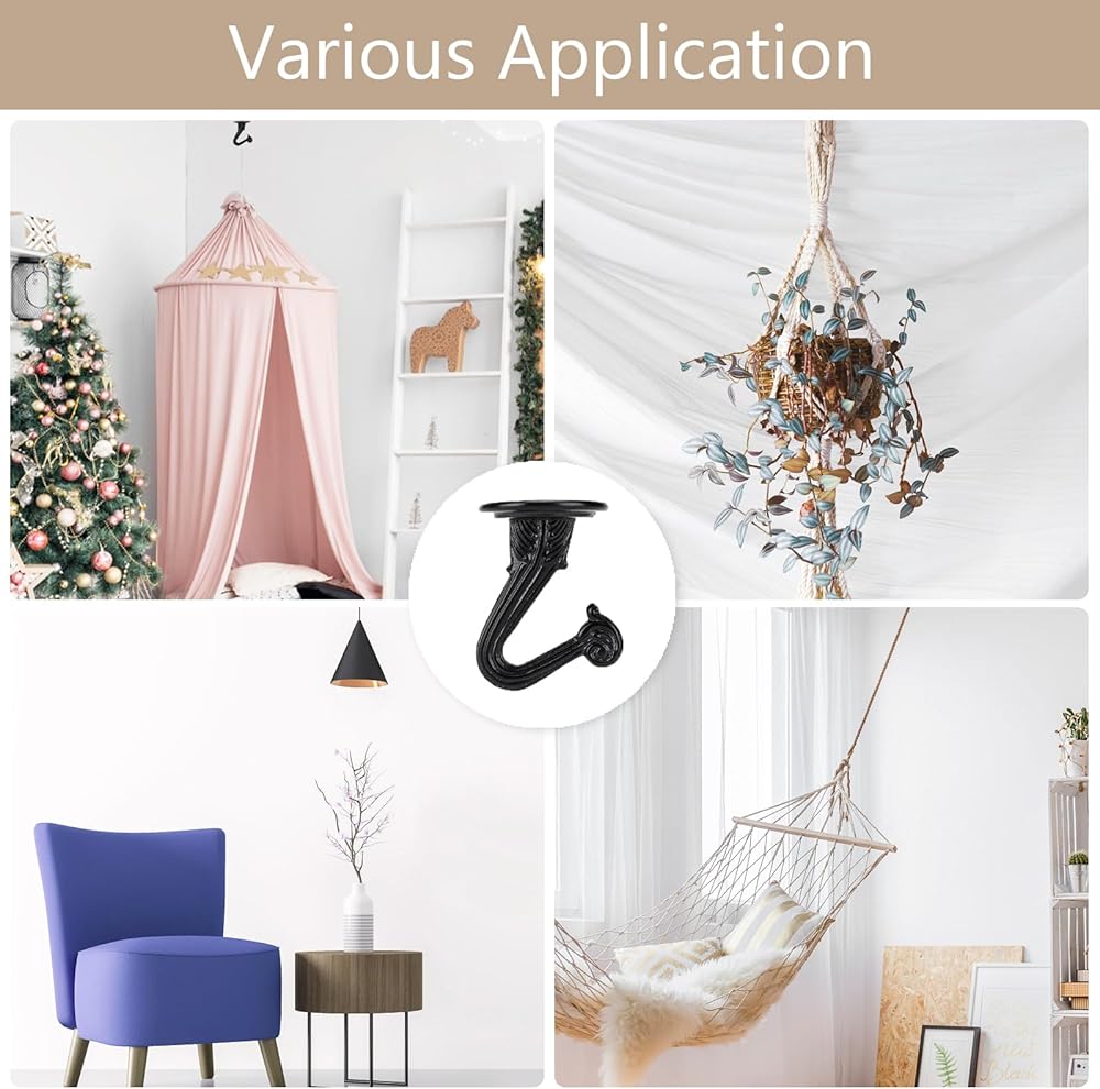 تطبيقات واسعة: خطاف السقف مثالي لتعليق النباتات، وتركيبات الإضاءة، والثريات، وقفص الطيور، وسلة الفاكهة، وأجراس الرياح، وشبكة السرير، والستائر الشفافة، والكوب، والمصباح وغيرها من الزخارف خفيفة الوزن.