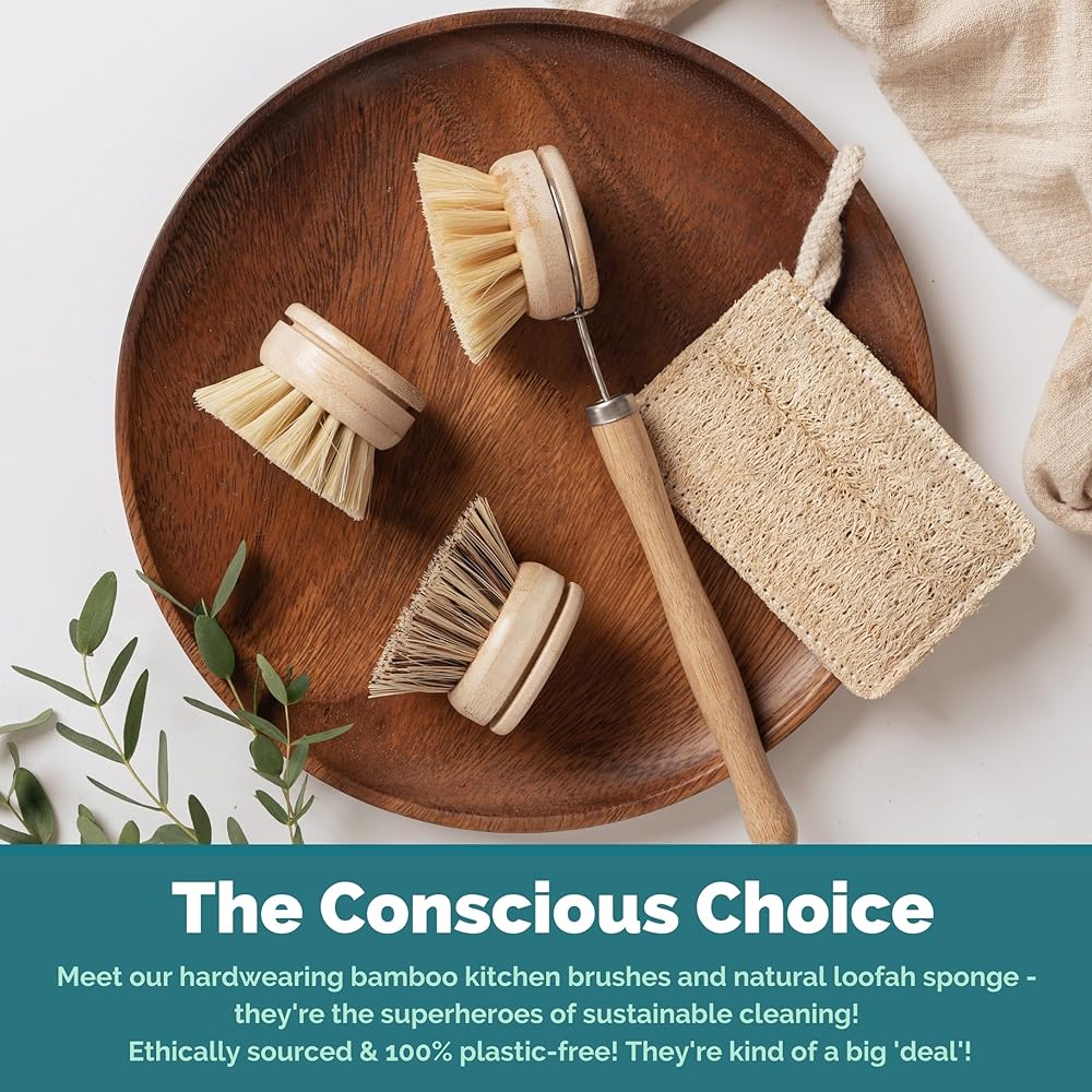 🌿 فرش غسيل المطبخ: لقد صممنا مجموعة فرش غسيل الأطباق الخاصة بنا ومنظفًا صديقًا للبيئة برأس قابل لإعادة الاستخدام والاستبدال. لا حاجة لشراء مجموعة كاملة مرة أخرى، ما عليك سوى استبدال رؤوس فرشاة الغسيل المصنوعة من الخيزران واستمر في الفرك!