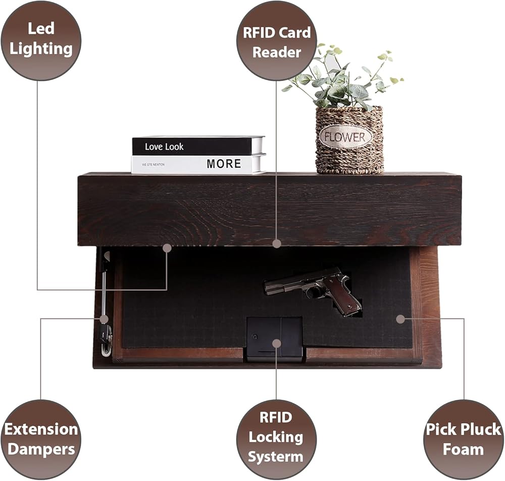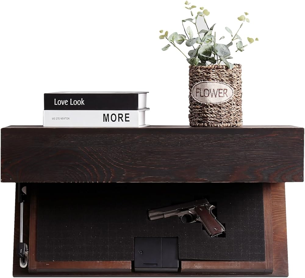 BLENDS TO ANY ROOM- A floating shelf with a hidden gun and secret compartment is an excellent piece of furniture for any home