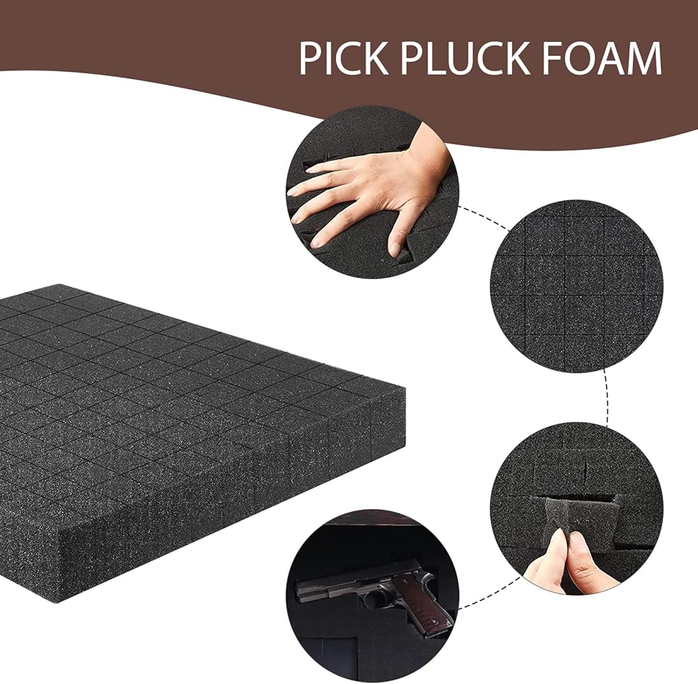 PRE-CUBED FOAM INSERT- The foam inserts for cases adopt a pre-cubed design for easy adjustment, just pull and pick away foam blocks to match the shape of your firearms, no need for die cutting, no complex tools needed.PRE-CUBED FOAM INSERT- The foam inserts for cases adopt a pre-cubed design for easy adjustment, just pull and pick away foam blocks to match the shape of your firearms, no need for die cutting, no complex tools needed.