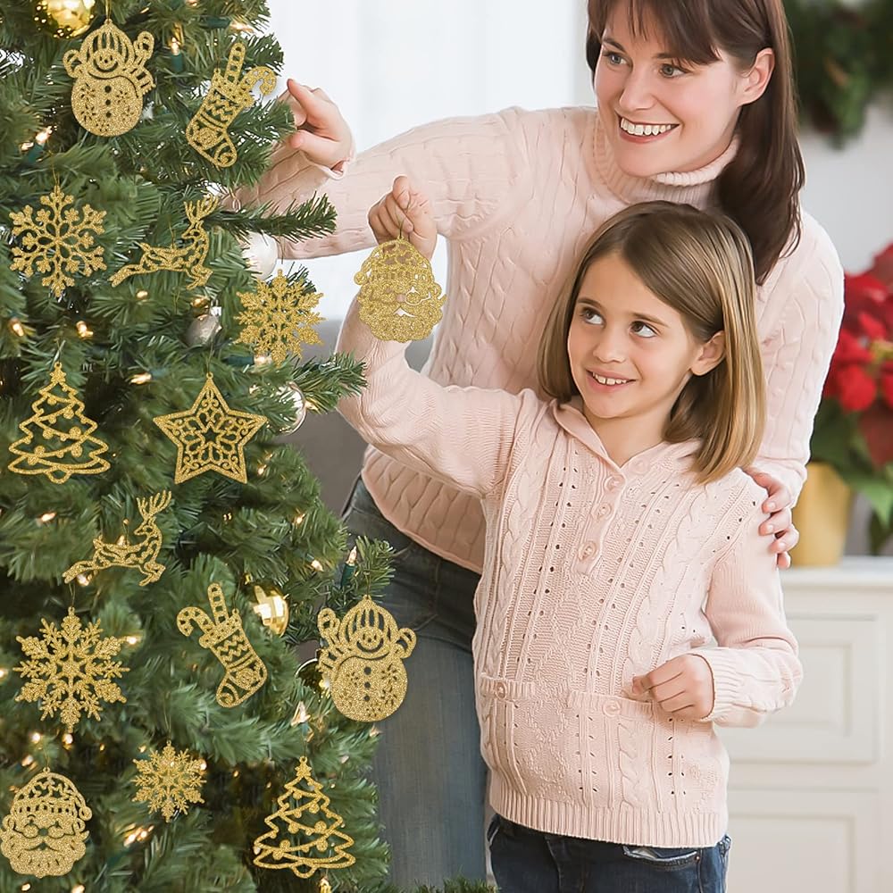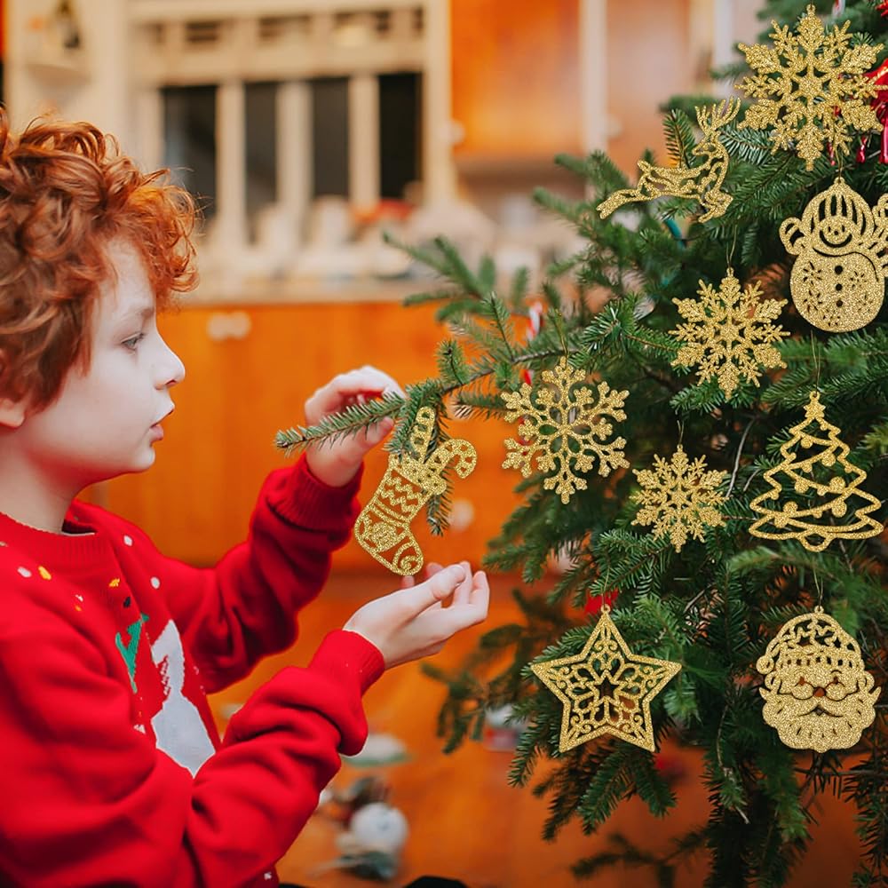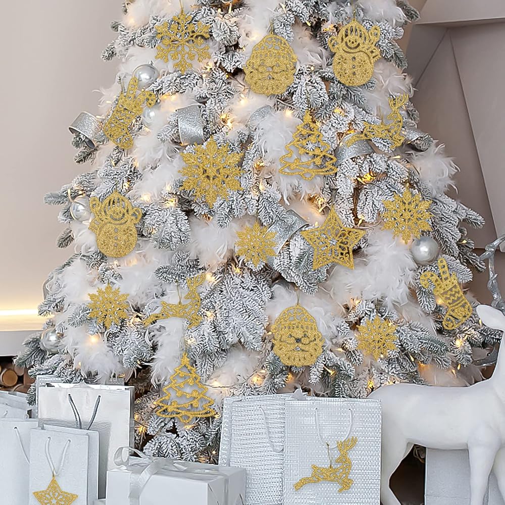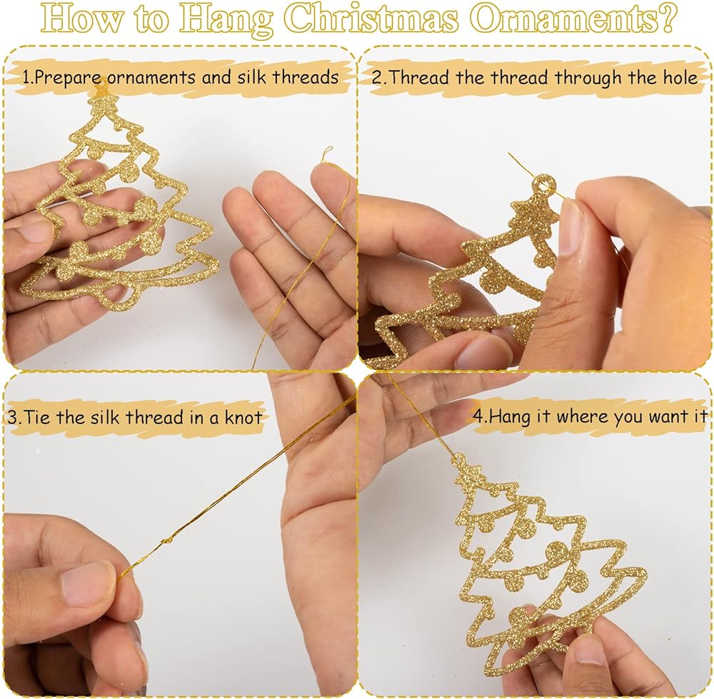 سهلة الاستخدام: تحتوي كل قطعة زينة من رقائق الثلج على شكل شجرة عيد الميلاد على فتحة في الأعلى لسهولة التعليق باستخدام الخيط المتوفر، يمكنك تعليقها على الحائط والأشجار والنوافذ والأسقف والمدافئ والأبواب التي من المؤكد أنها تضيف المزيد من جو عيد الميلاد إلى حفلتك على الفور.