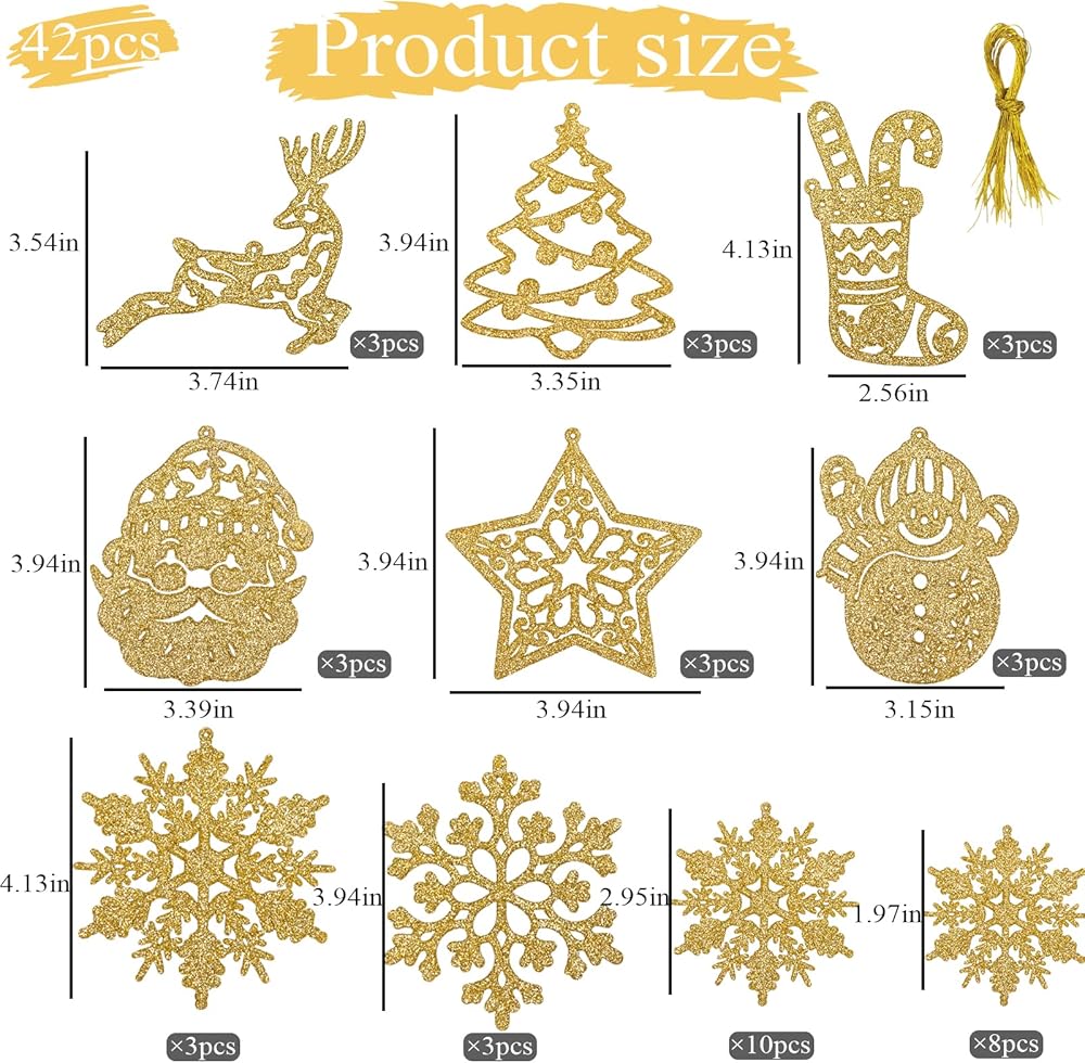 زينة عيد الميلاد باللون الأسود اللامع: سوف تحصل على مجموعة قيمة رائعة مكونة من 42 قطعة من زينة شجرة عيد الميلاد السوداء مجموعة من 6 تصميمات لطيفة لعيد الميلاد في 4 مقاسات مختلفة من 2 بوصة إلى 4 بوصة: إنها رقاقات ثلج (نمطان)، ورجل ثلج، وسانتا كلوز، جورب، إلك، نجمة وشجرة عيد الميلاد، الكثير من زينة عيد الميلاد لزينة عيد الميلاد الخاصة بك