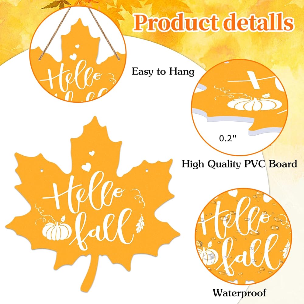 【Material】: Hello Fall sign for front door decor is made of high quality PVC board material,which is durable and reusable,lightweight and water resistant and can be used in all four seasons,suitable indoors or outdoors use.