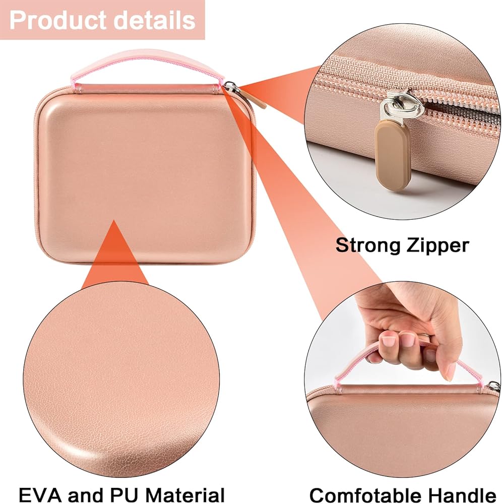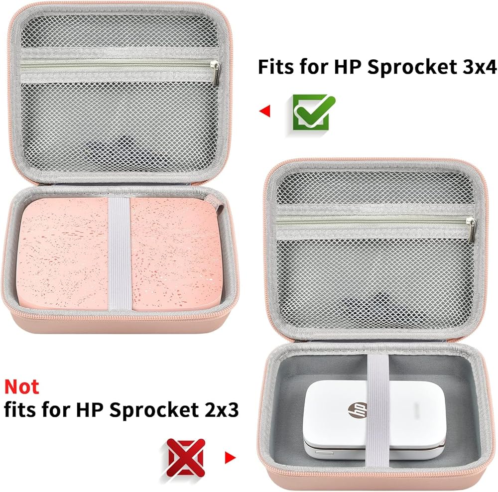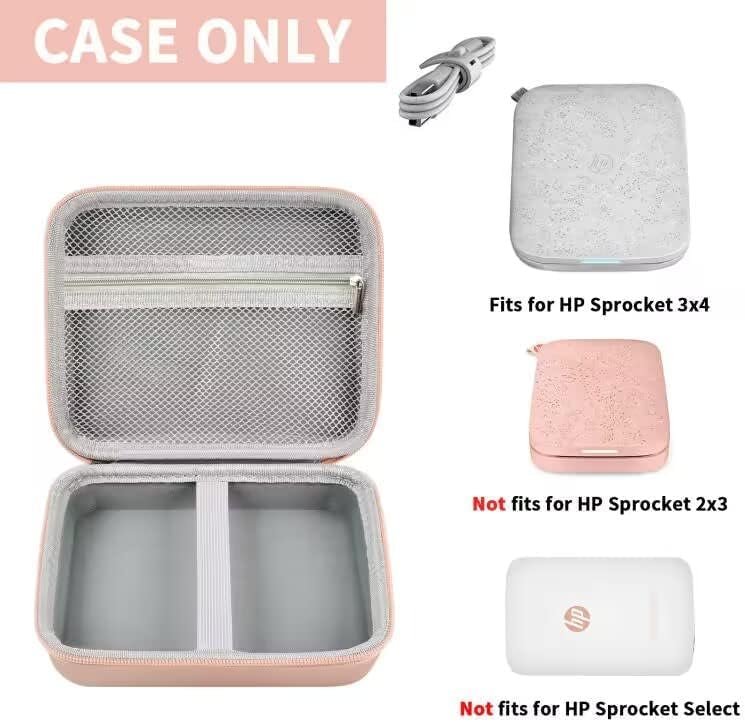 حافظة متوافقة مع طابعة الصور الفورية HP Sprocket 3x4، وحامل تخزين ومنظم حمل مع جيب شبكي لورق الزنك، وألبوم الصور، وأقلام التحديد، والملصقات وغيرها من الملحقات (العلبة فقط) - ذهبي وردي