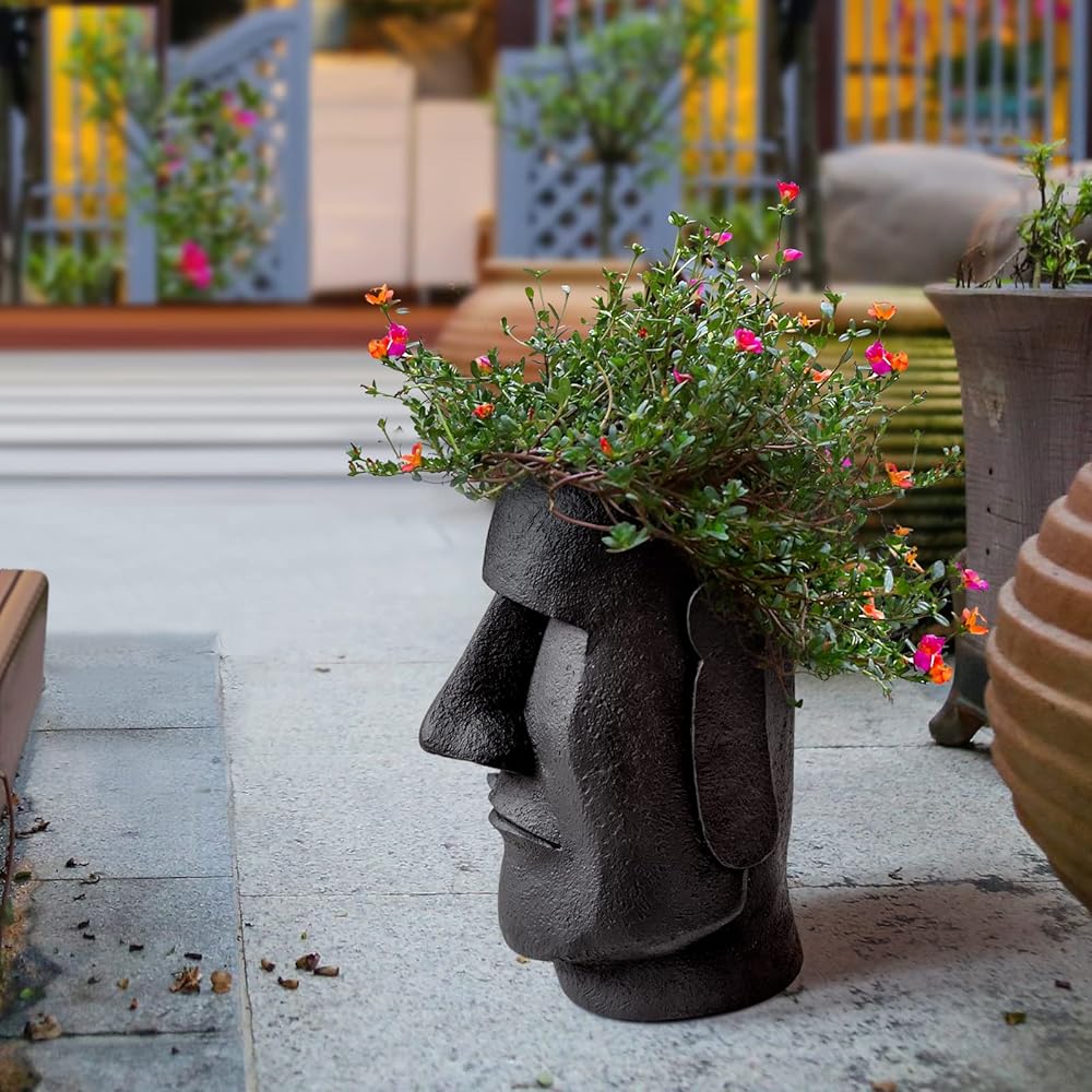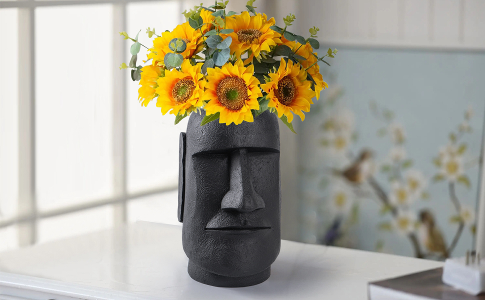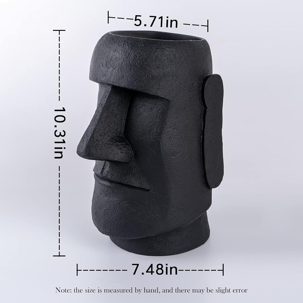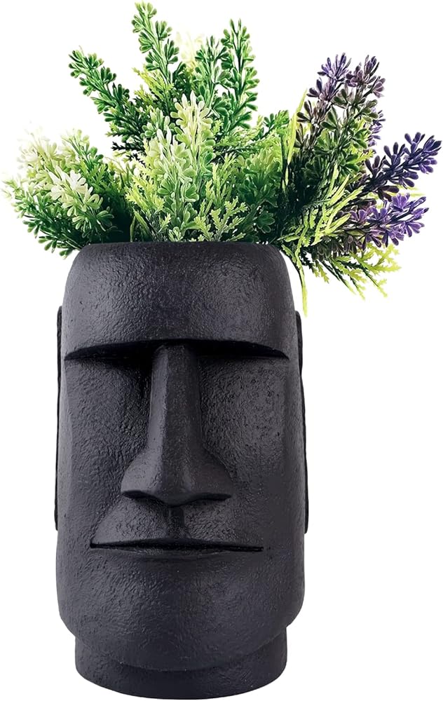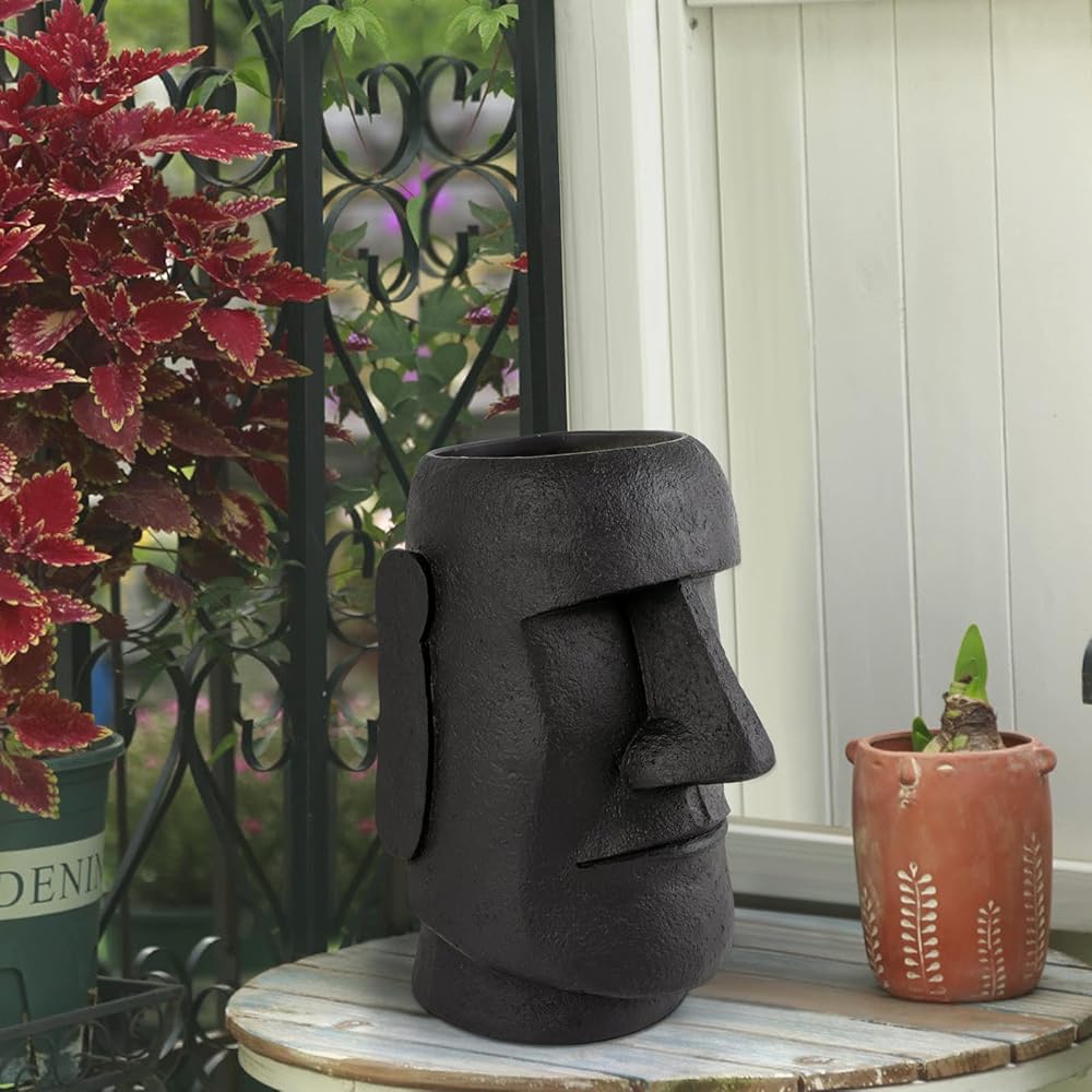 Notakia جزيرة عيد الفصح رئيس موي تمثال زهرة مزهرية وجه الأواني رئيس على شكل ديكور التماثيل المصنوعة من لهجات ديكور المنزل مصنوعة من الراتنج - 10.3 "ارتفاع (أسود كبير)