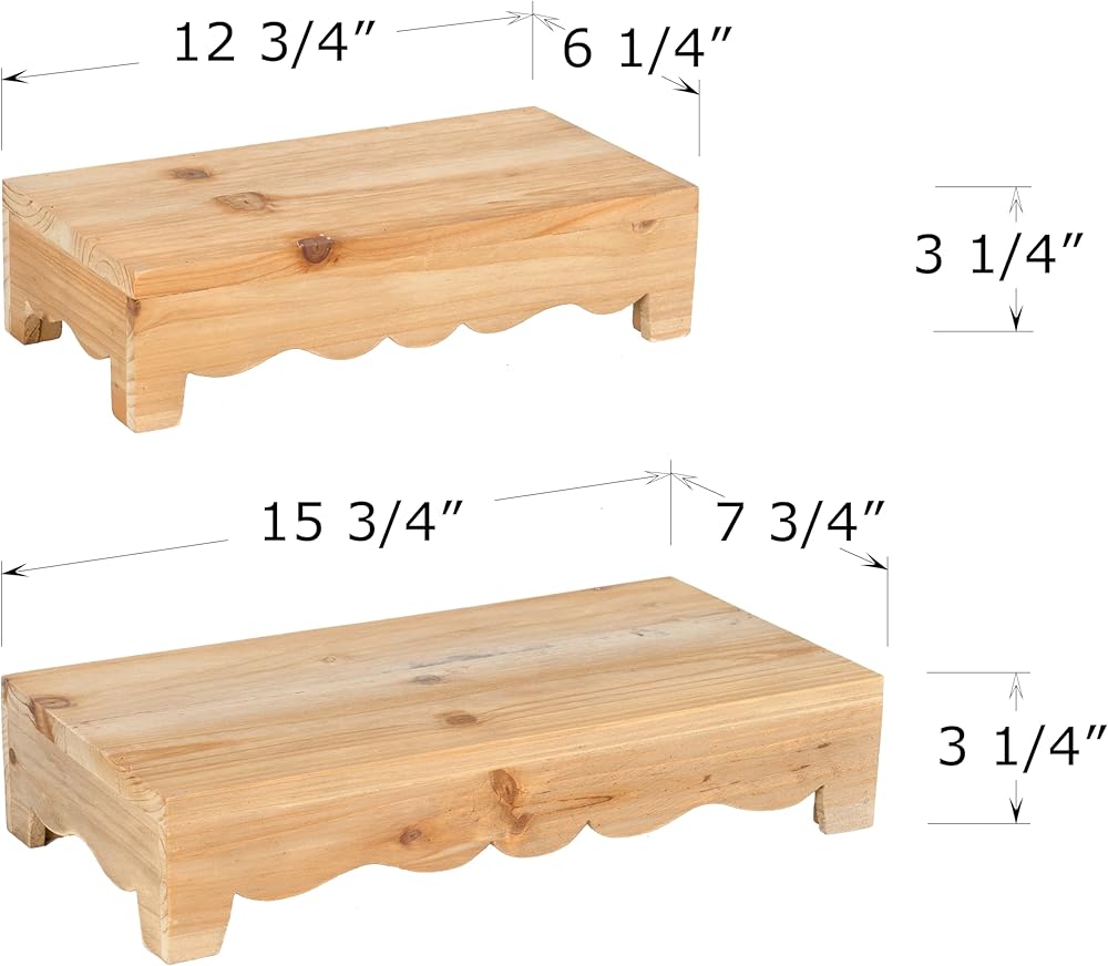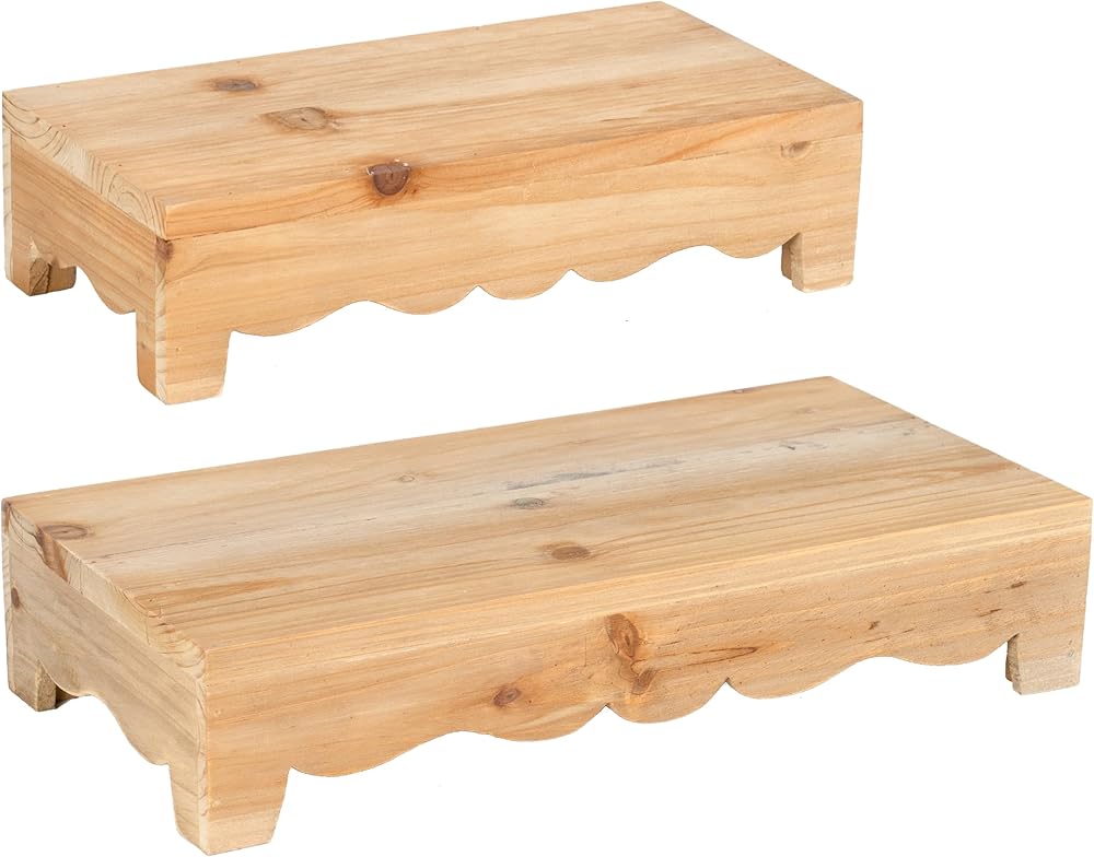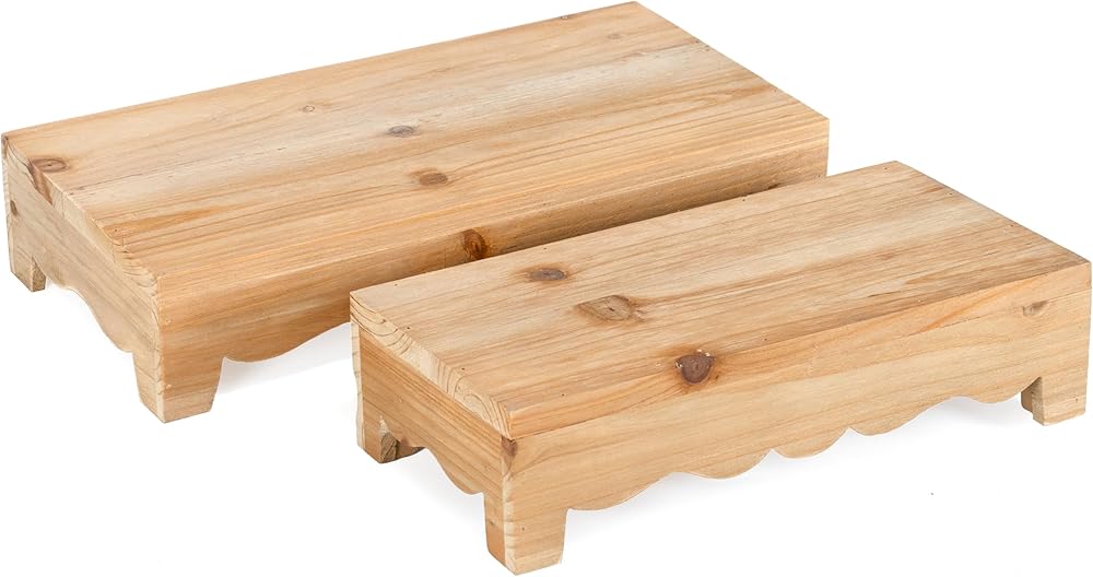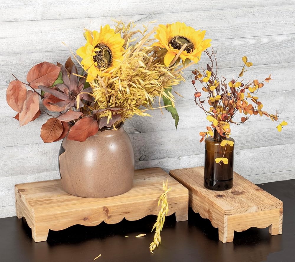 Add a touch of rustic charm to your home decor with this set of two decorative wooden pedestal stands. Ideal for any part of your home, indoors or outdoors, to display accent pieces or as an organizational tool. Made from high-quality wood, these risers come in two sizes, 15.75 inches and 12.75 inches respectively, and feature a natural brown finish that enhances their rustic appeal. These pedestal stands are just the right size for displaying a variety of decorative items in any room of your home. Their stackable design makes them perfect for creating a multi-level display or for use in smaller spaces. They make a great gift for friends and family who love rustic decor.