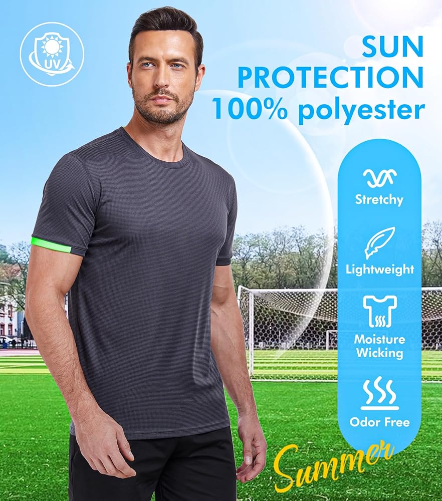 【سريع الجفاف ومنسم】- تتميز قمصان الجري الرجالية ذات التصميم الجاف بتصميم شبكي فائق لدوران الهواء، فهي سهلة للغاية بمعنى أنها تسمح بمرور الكثير من الهواء، مما يبقيك باردًا.