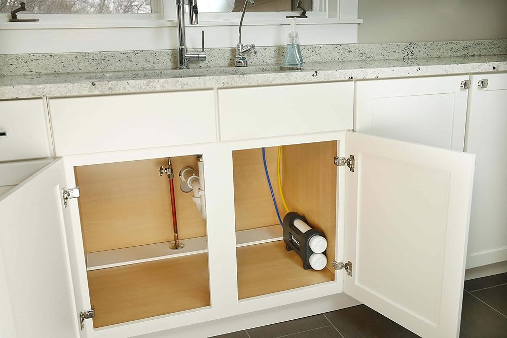Filters water for safer drinking, better tasting beverages and cleaner fruits and vegetables
