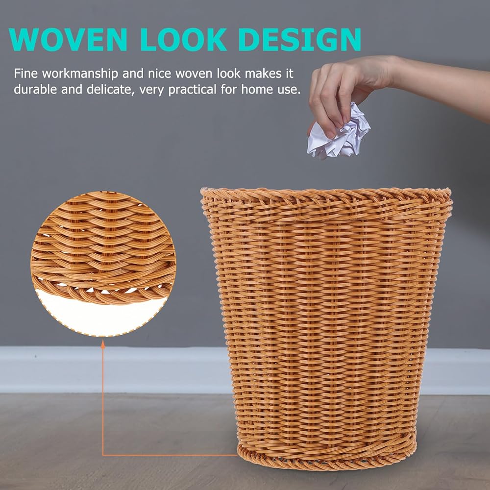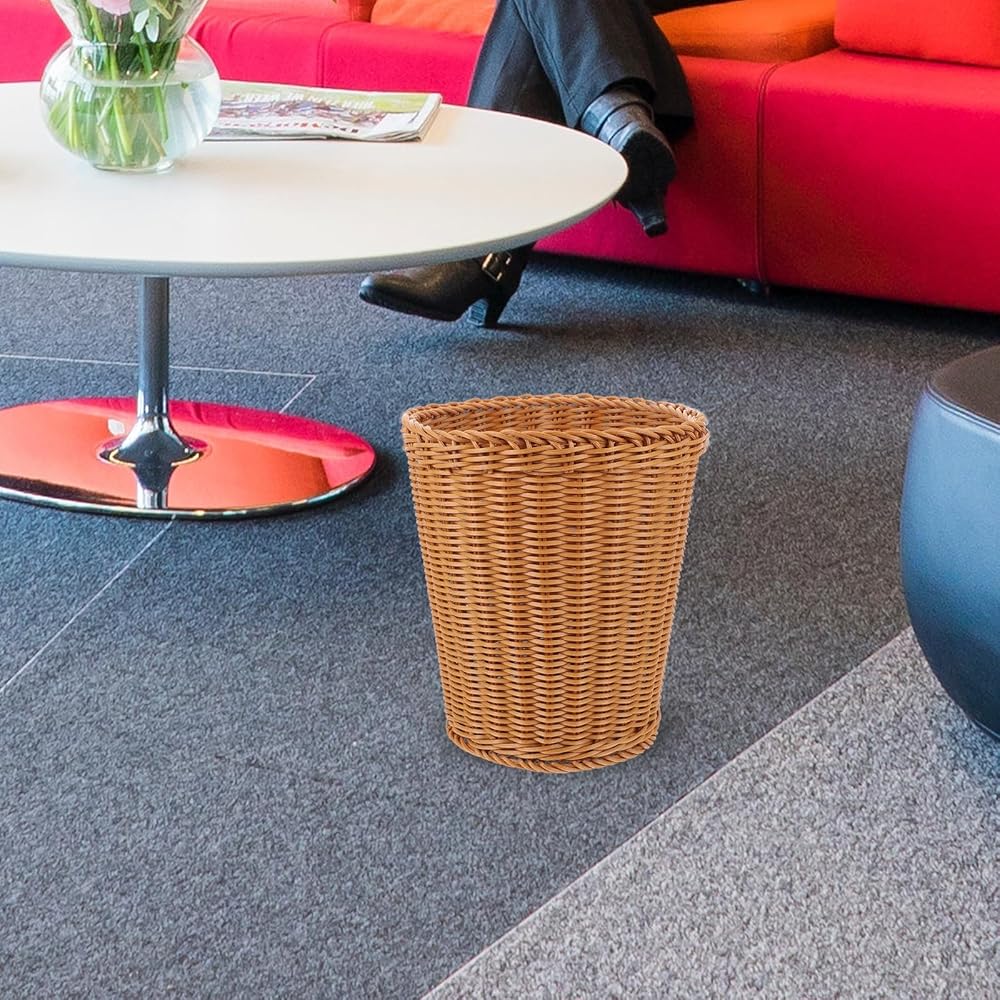 BESTOYARD الروطان سلة المهملات سلال تخزين البلاستيك تشكيلة زهور الديكور سلة النفايات المنسوجة سطح الطاولة سلة منسوجة سلة الأعشاب البحرية متعددة الاستخدام سلة منسوجة مكتب الشاي القهوة مع غطاء
