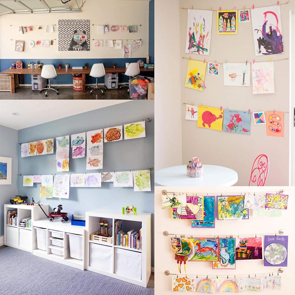 -Application: The set is a good curtain wire rod designed, mounts to wall or ceiling. Also it is a decorative display solution to hang photos, school projects, illustrations, paintings, crafts, and so much more.