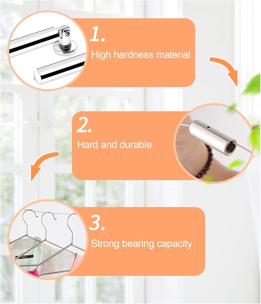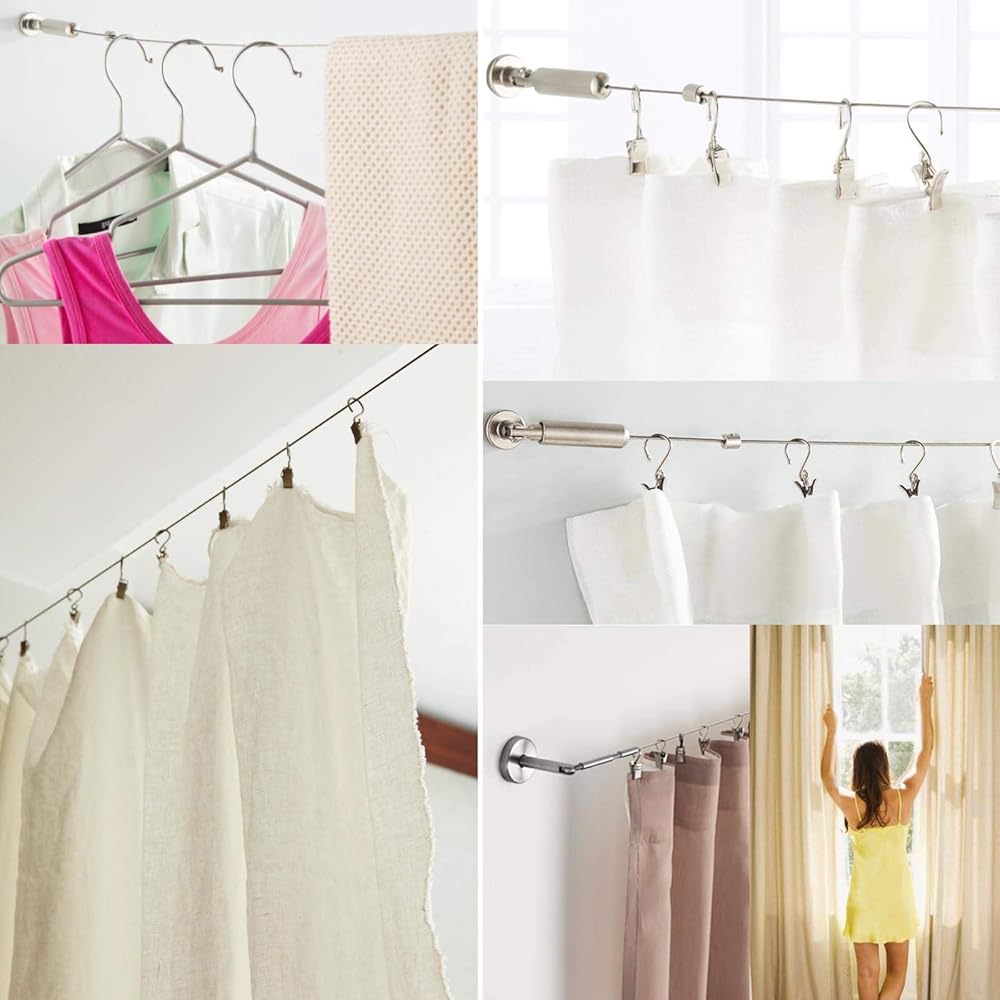 • Application: The set is a good curtain wire rod designed, mounts to wall or ceiling. Also it is a decorative display solution to hang photos, school projects, illustrations, paintings, crafts, and so much more.