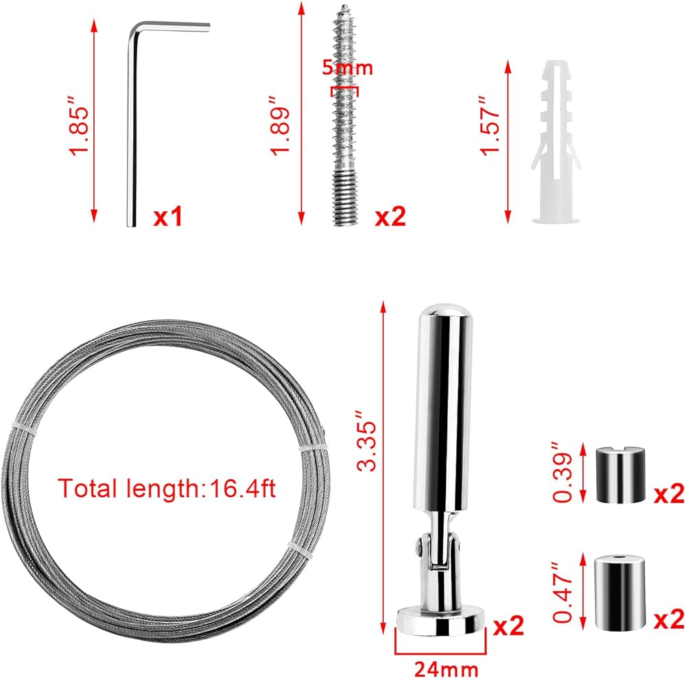 -Wire length: It could be mounted to any wall. The 304 stainless steel wire rod is 5m/ 16.4ft, meet you need.