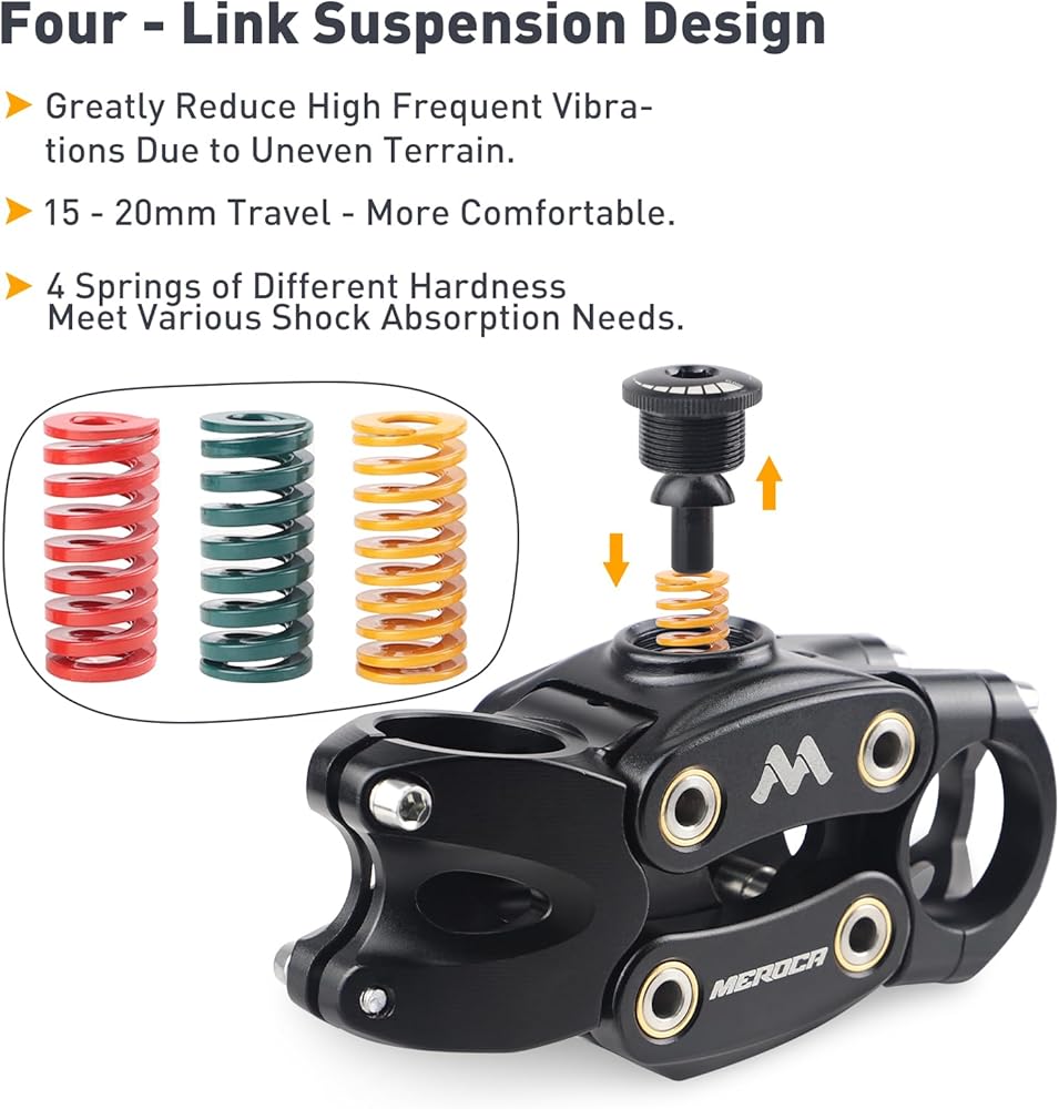 Customizable Springs: The suspension stem is equipped with 4 interchangeable springs that can be easily adapted to different terrains and personal preferences.